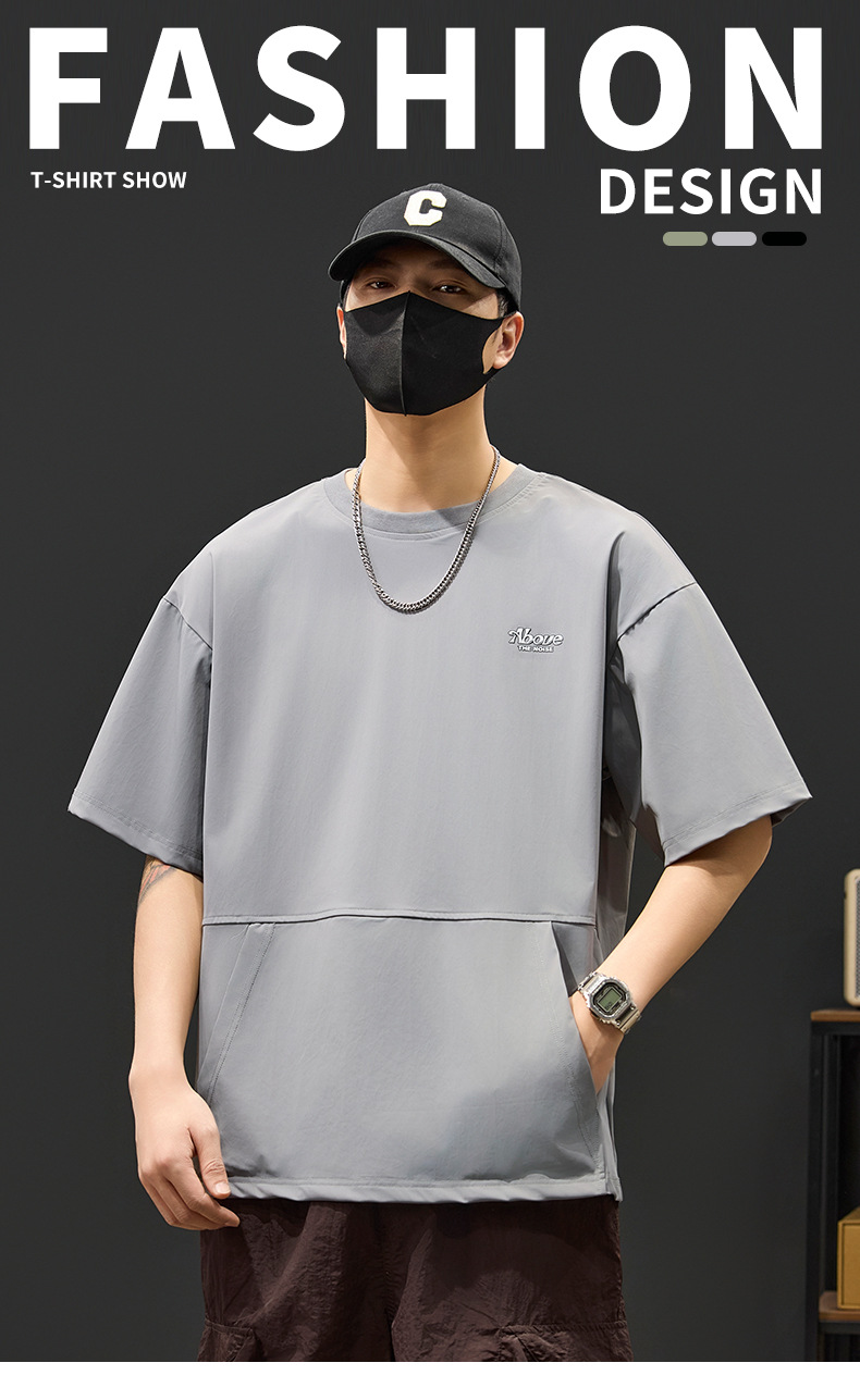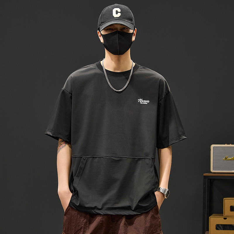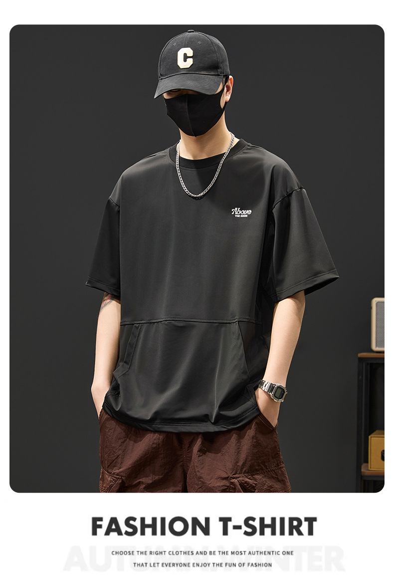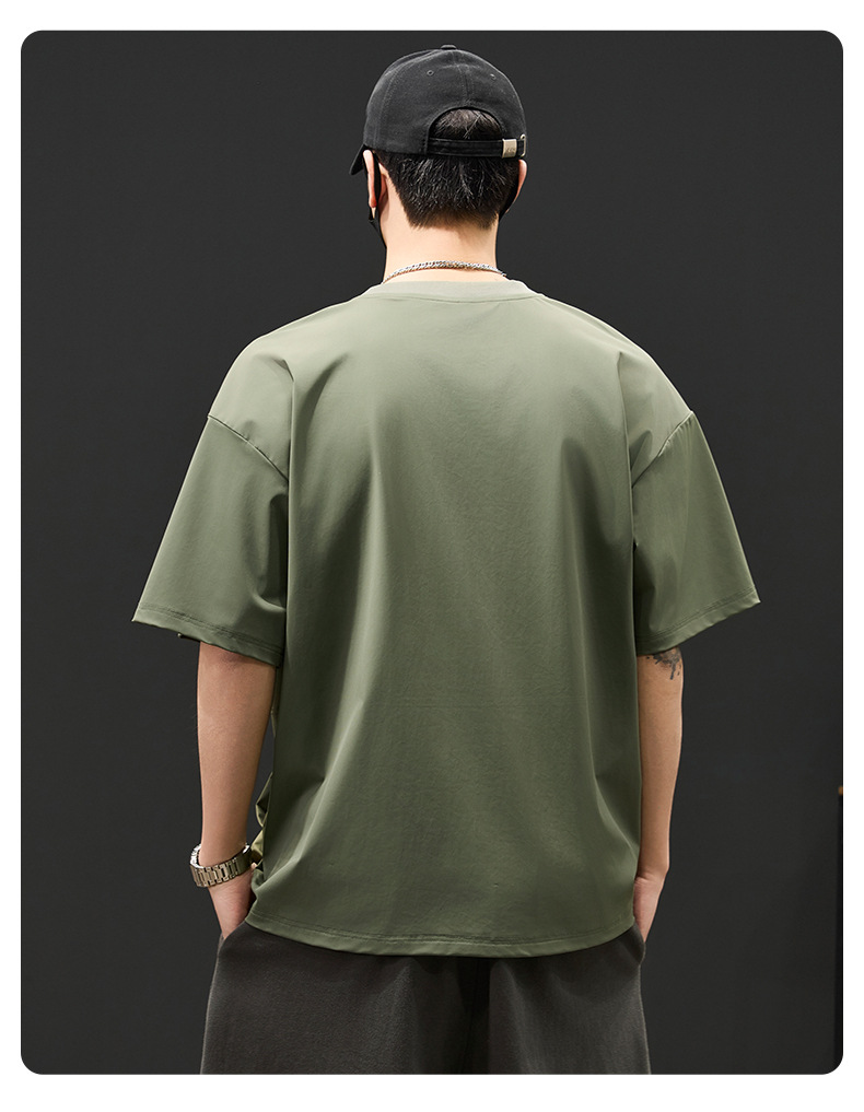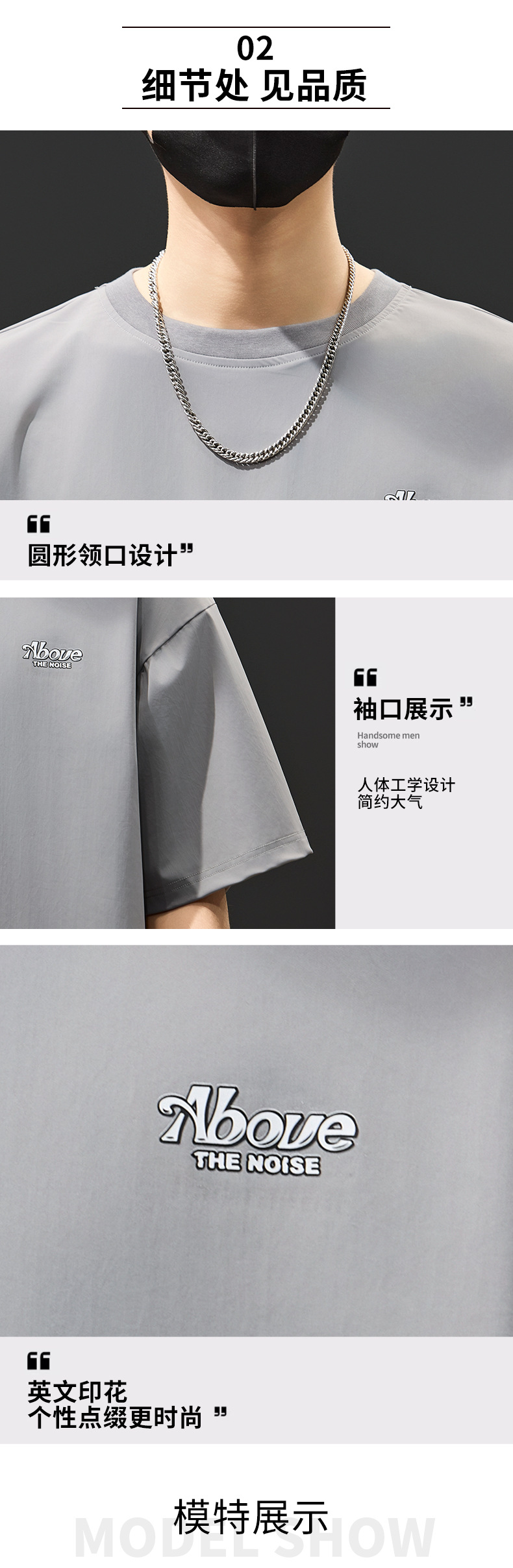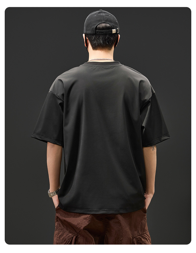 日系潮流港风宽松短袖男款 2025夏季新款罗纹圆领印花休闲上衣t恤