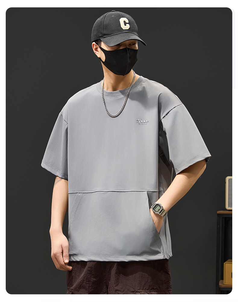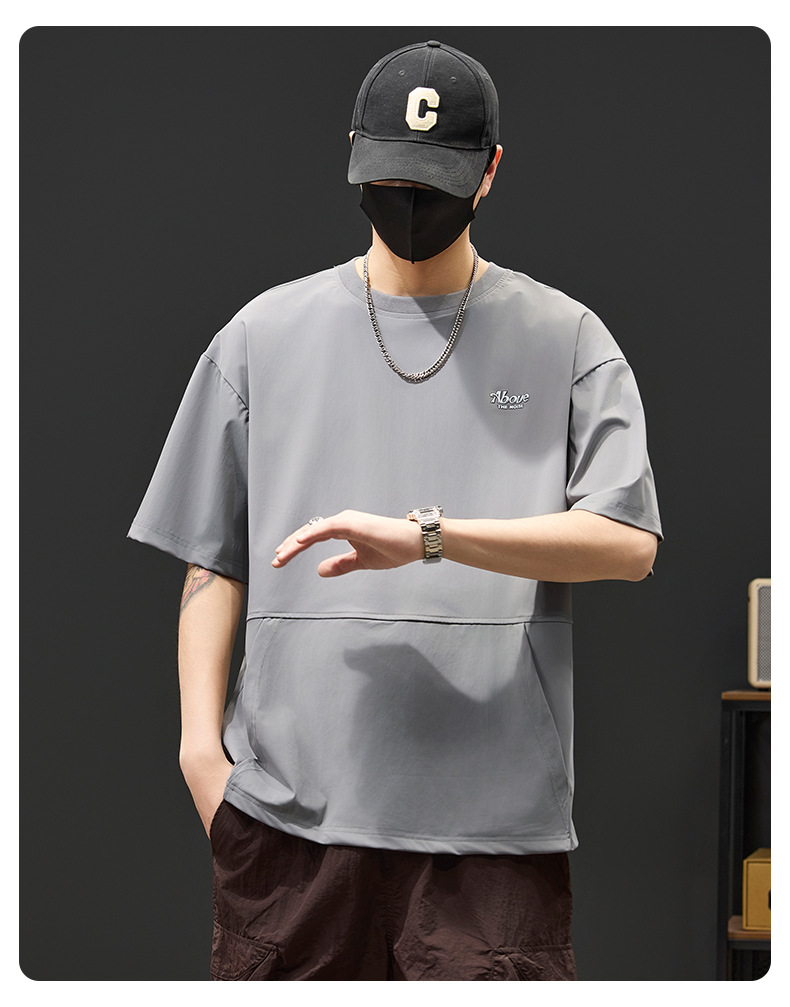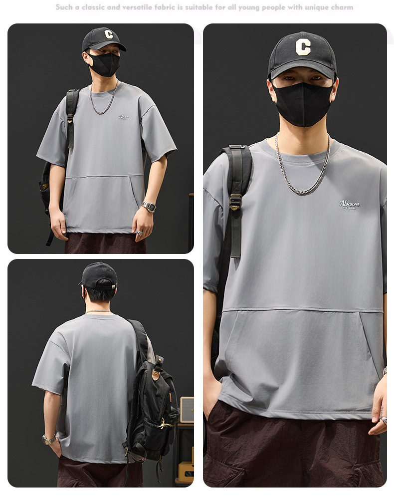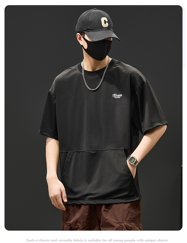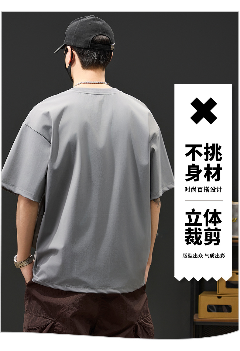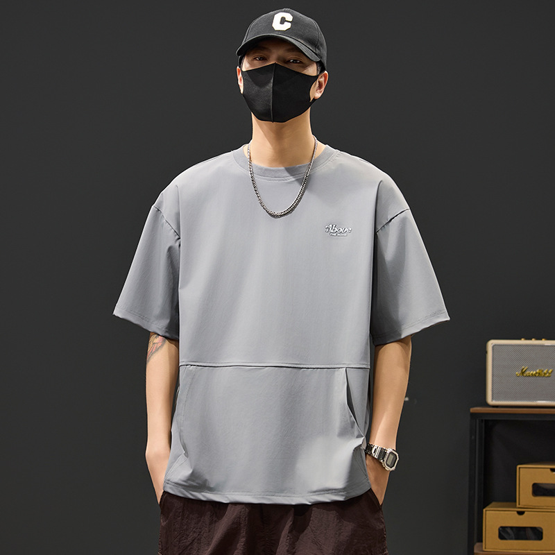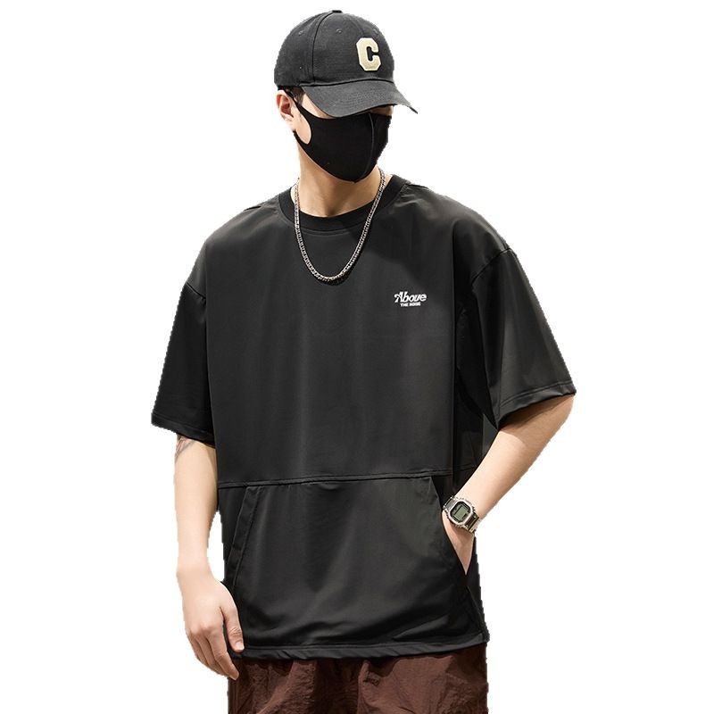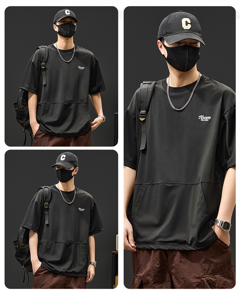 日系潮流港风宽松短袖男款 2025夏季新款罗纹圆领印花休闲上衣t恤