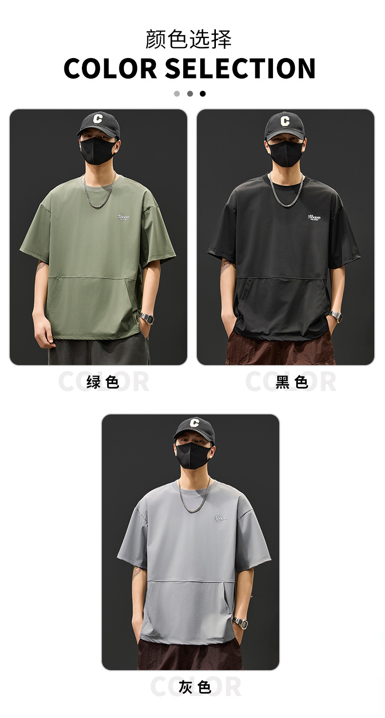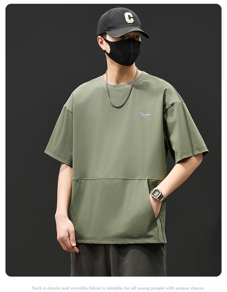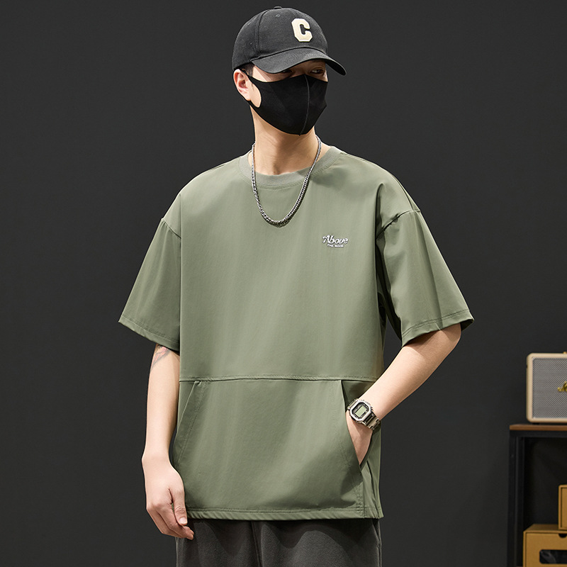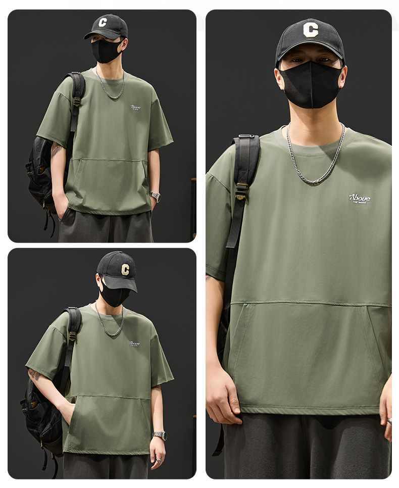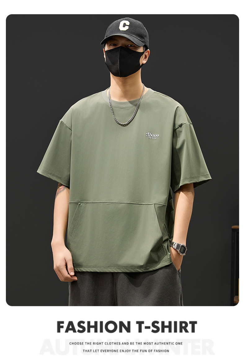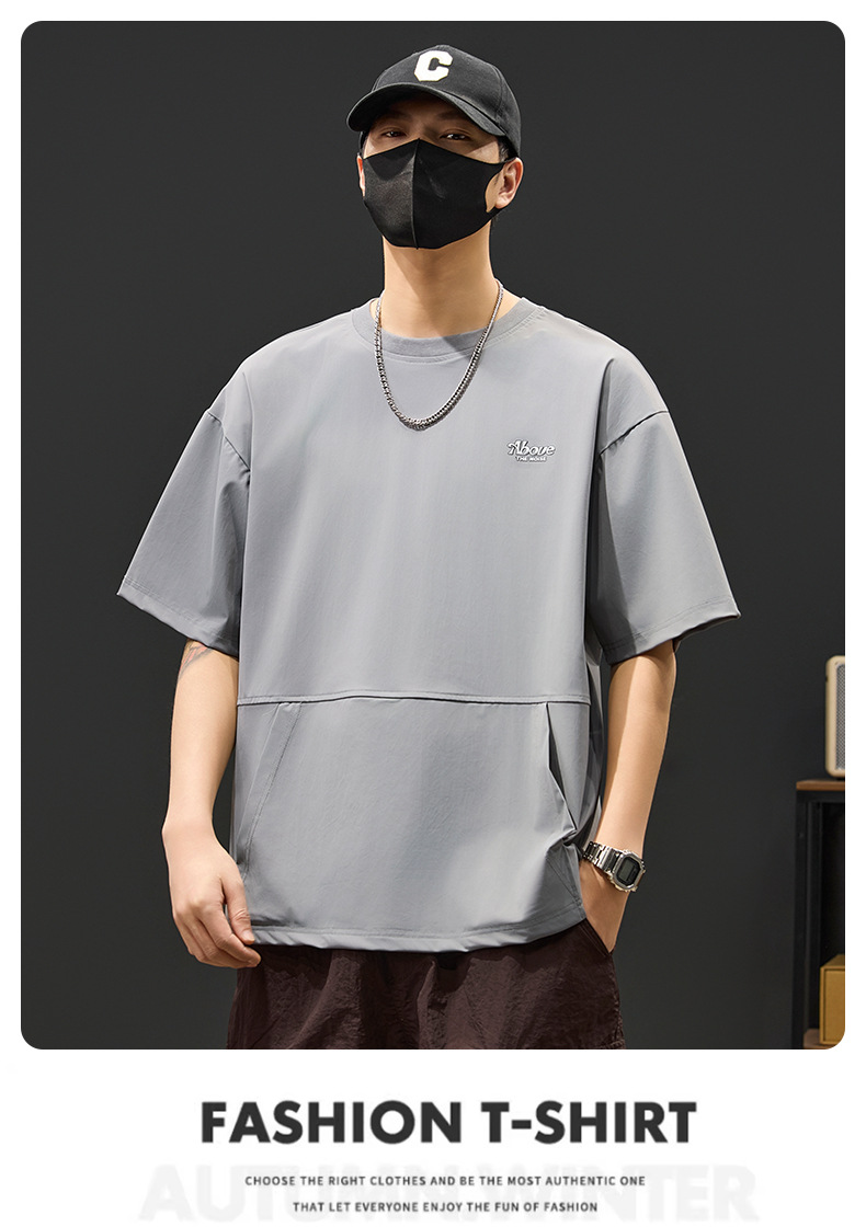 日系潮流港风宽松短袖男款 2025夏季新款罗纹圆领印花休闲上衣t恤