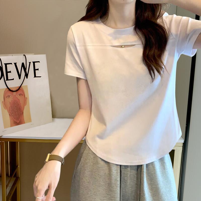 镂空短袖t恤女2025夏季新款显瘦辣妹设计感学生修身打底上衣ins潮