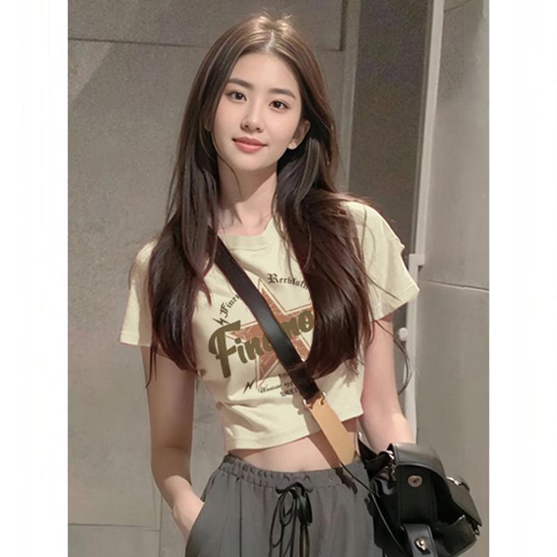美式高街甜辣风穿搭短款短袖女夏季新款设计感正肩短款上衣潮