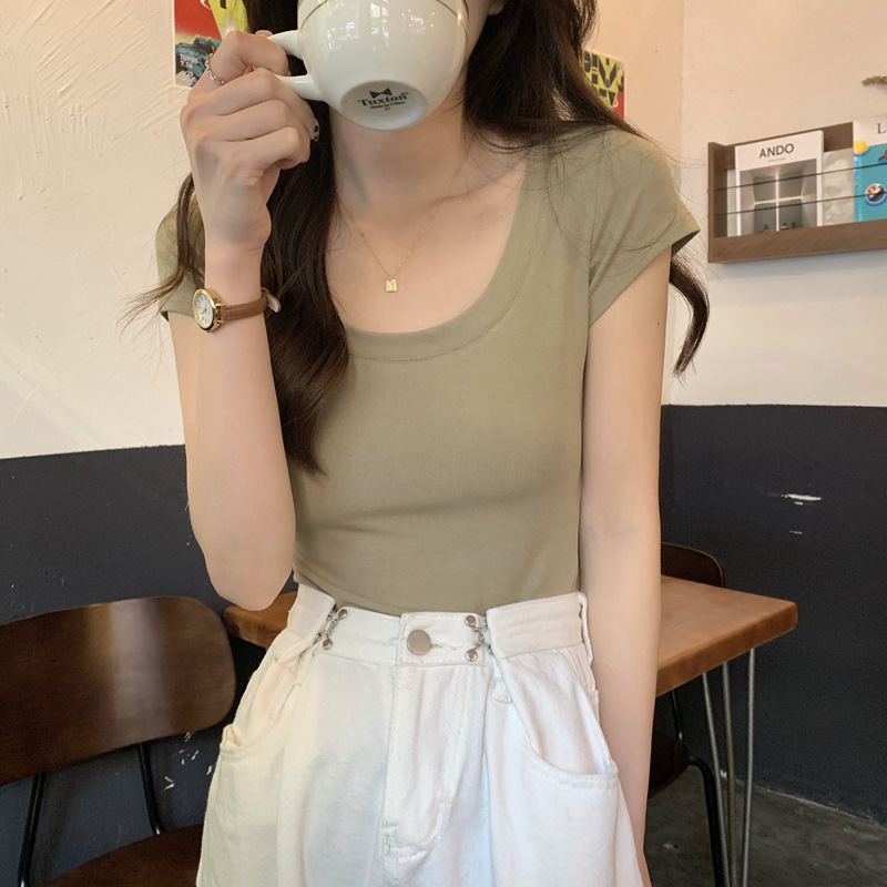 纯色休闲百搭短袖T恤女内搭打底衫夏季修身U领学生上衣ins潮