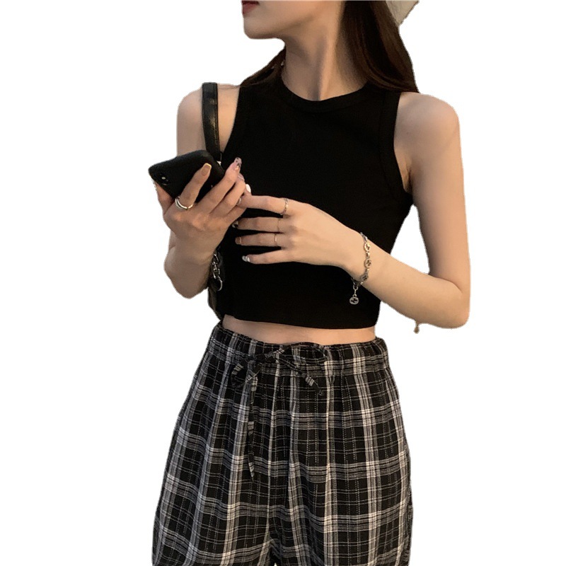 美式小圆领显瘦露脐短款外穿背心夏季新款辣妹吊带上衣设计感
