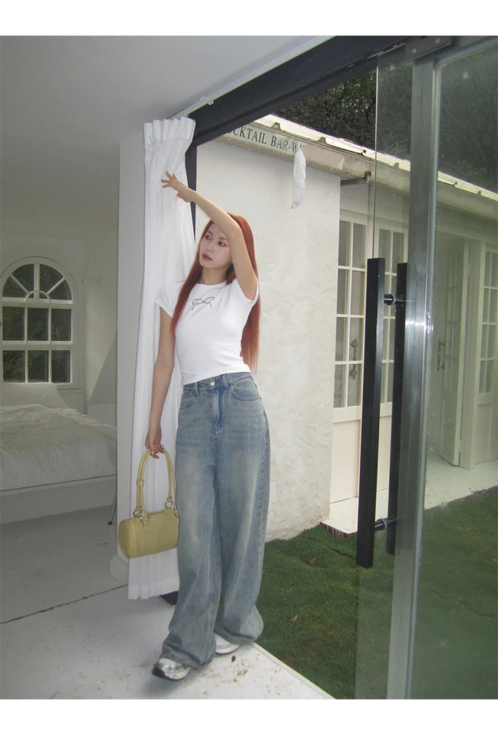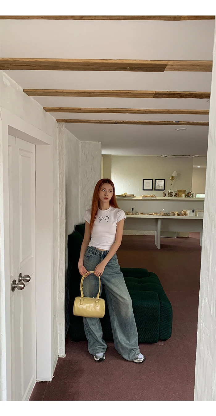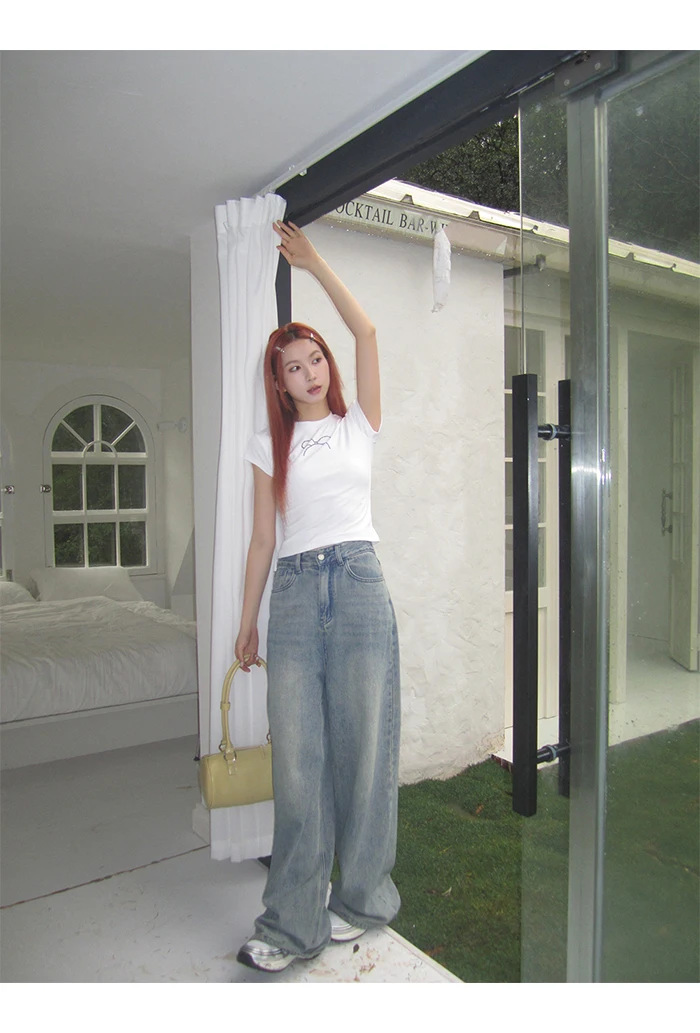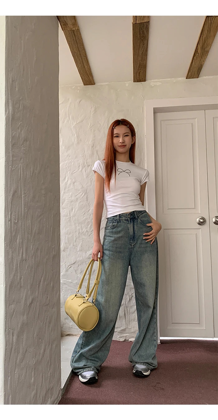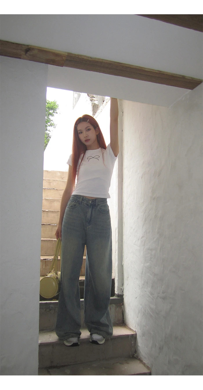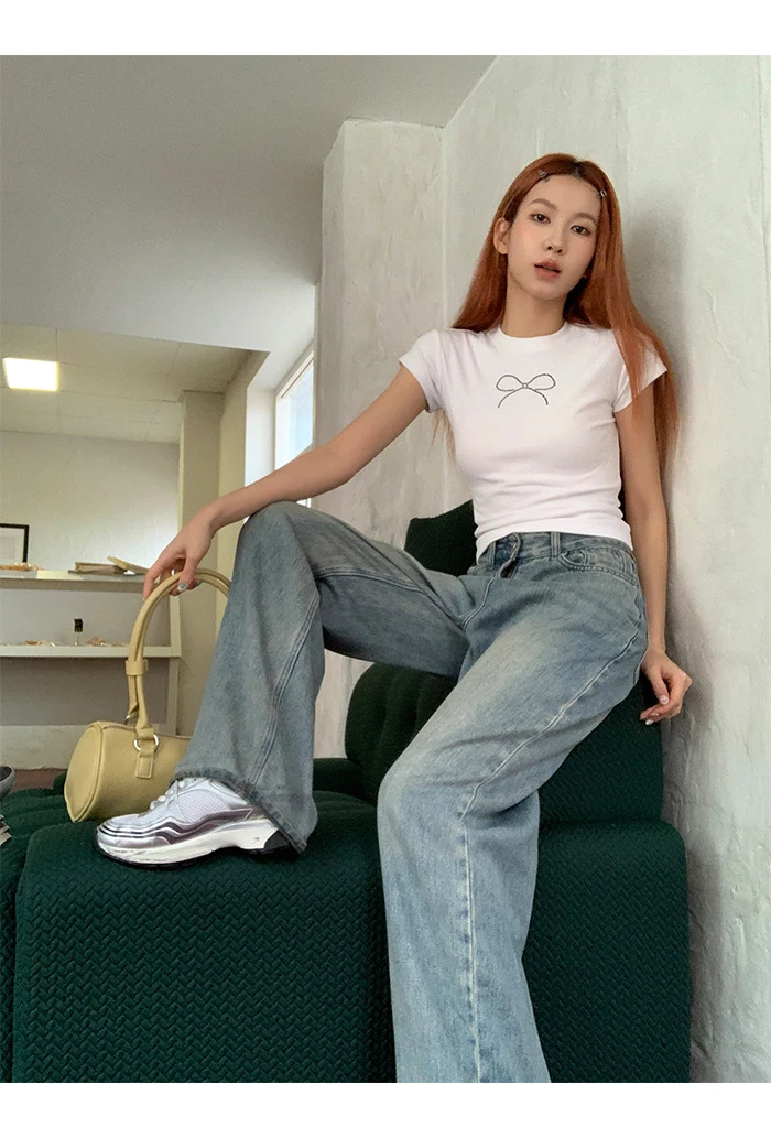 夏季新款圆领套头短袖蝴蝶结露脐欧美女装上衣T恤烫钻短款女