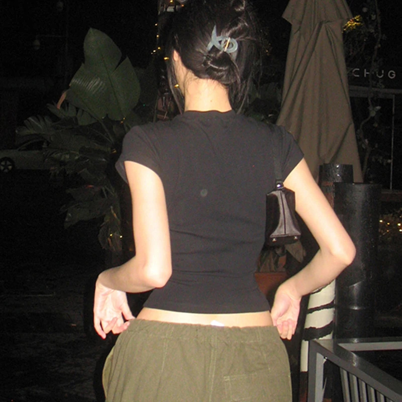 2024夏季新款圆领套头短袖字母露脐欧美女装上衣T恤烫钻短款女