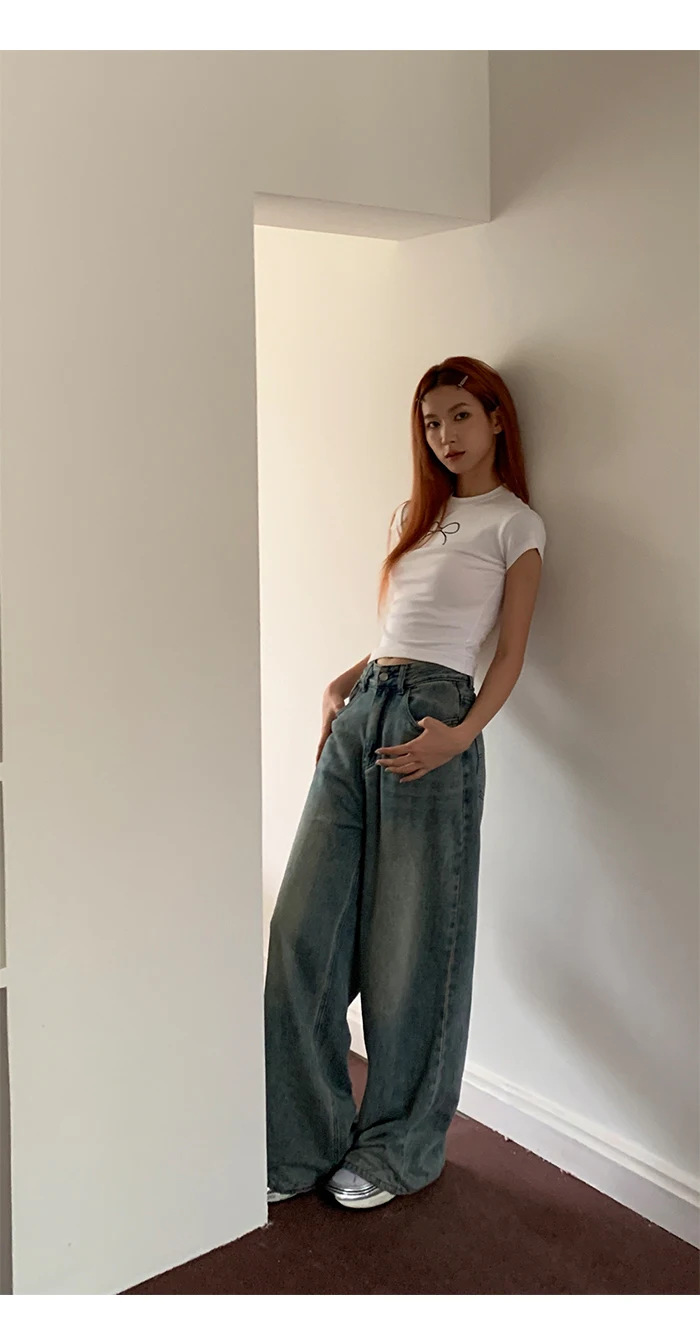 纯棉短款短袖t恤女2025新款洋气时髦夏季韩版抽绳小众设计感上衣