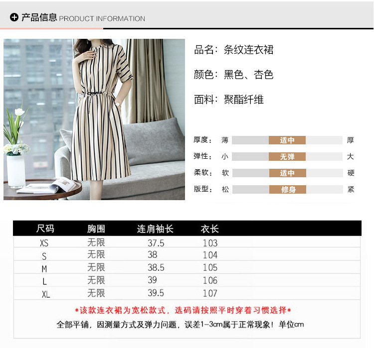 夏季新款韩版收腰气质时尚休闲宽松中长款条纹连衣裙女装外贸