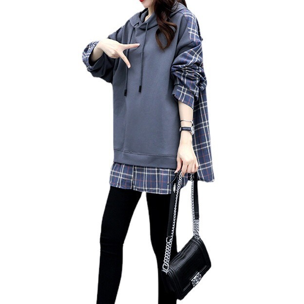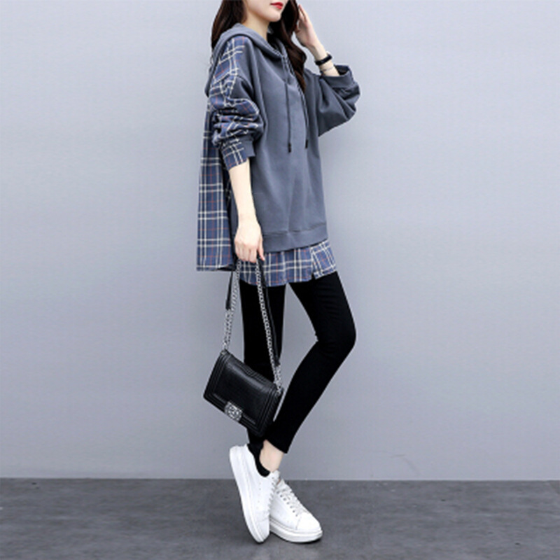 6535棉假两件卫衣女潮连帽秋季女韩版宽松大码女装新款妈妈装