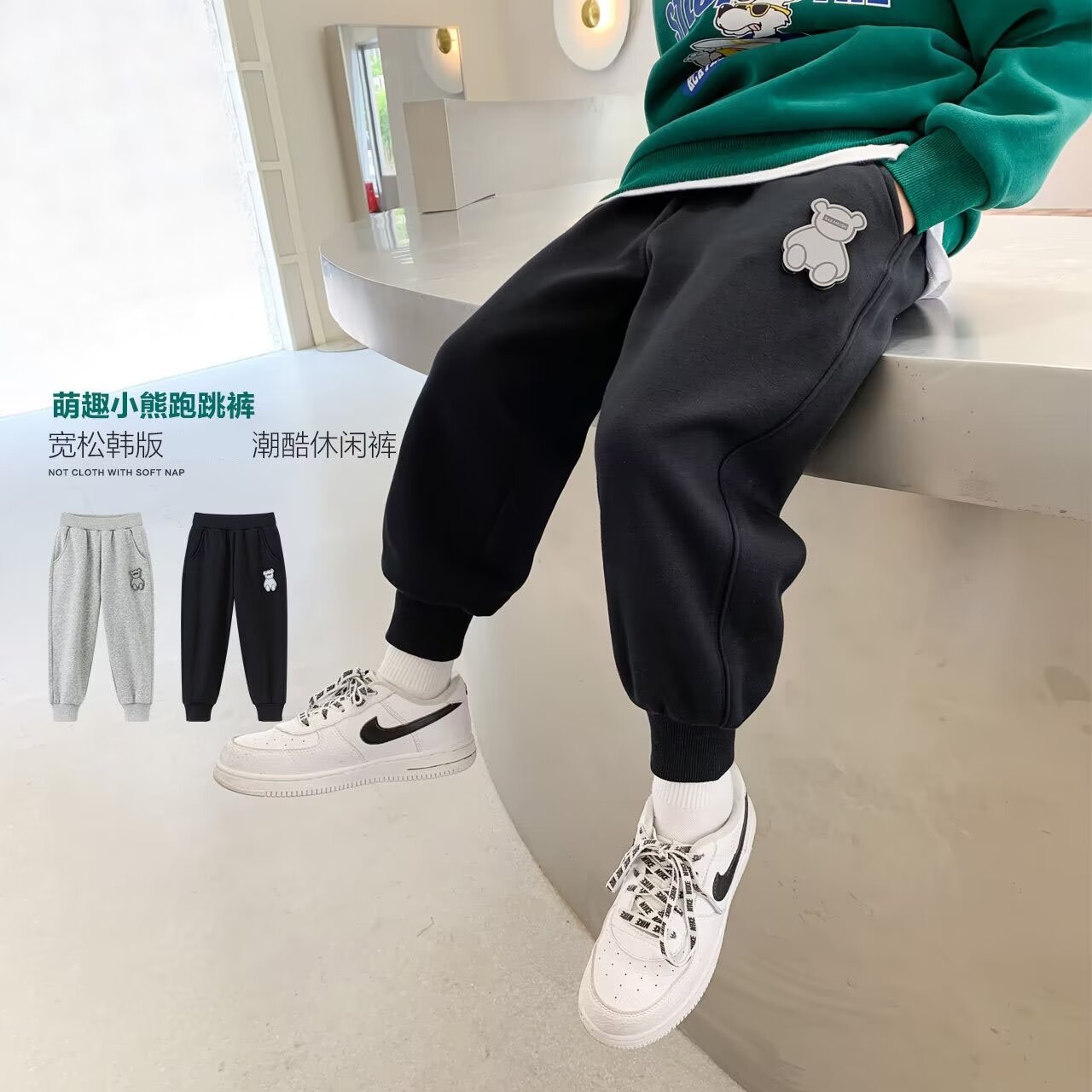 外贸男童春秋卫裤爆款童装小熊跑跳运动裤学生宽松束脚休闲裤