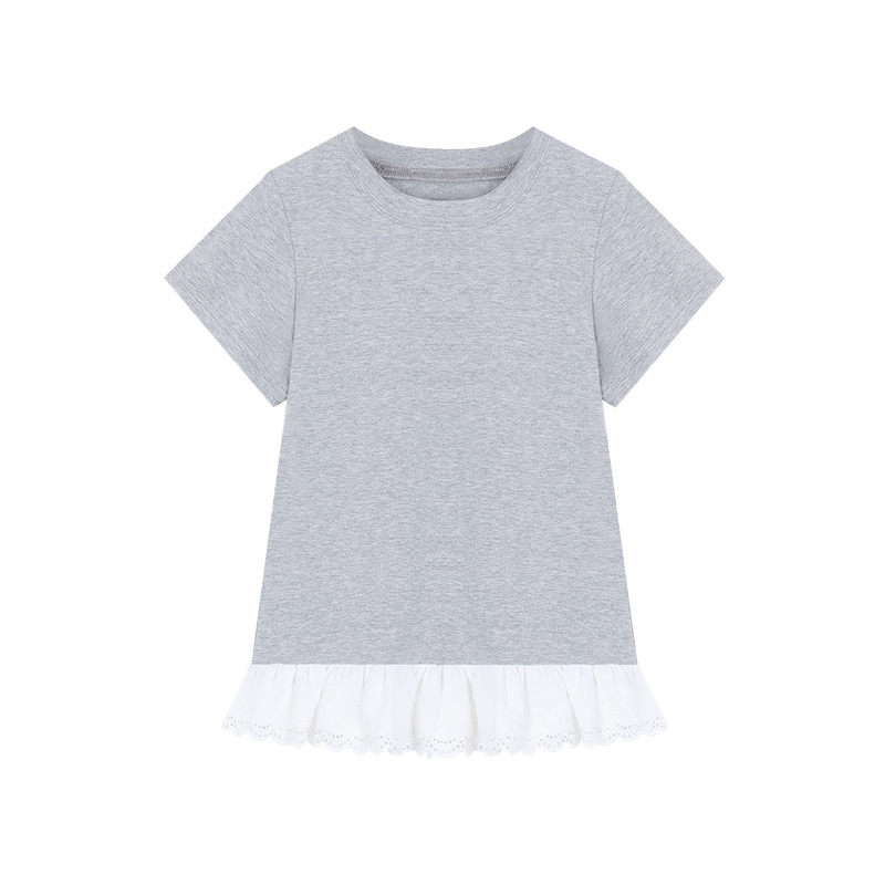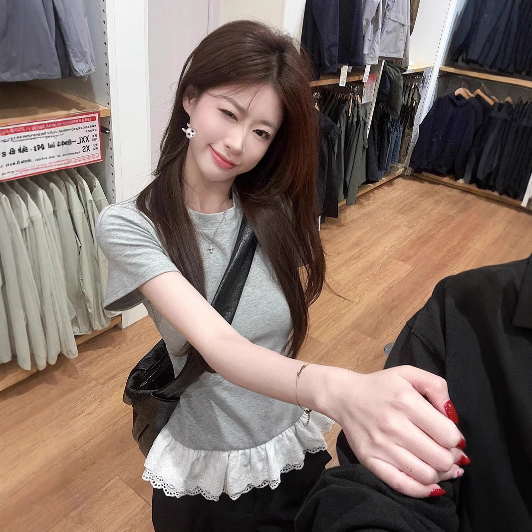 温柔甜妹风设计感蕾丝拼接短袖T恤女2025夏季修身显瘦学生上衣潮