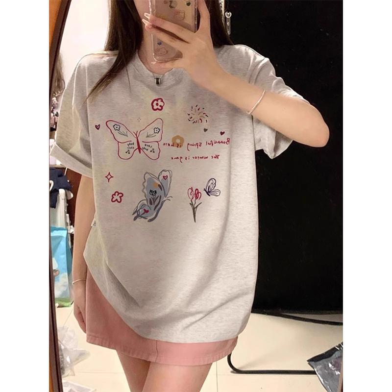 韩系chic别致上衣短袖T恤女夏季小众重磅慵懒风纯棉半袖上衣