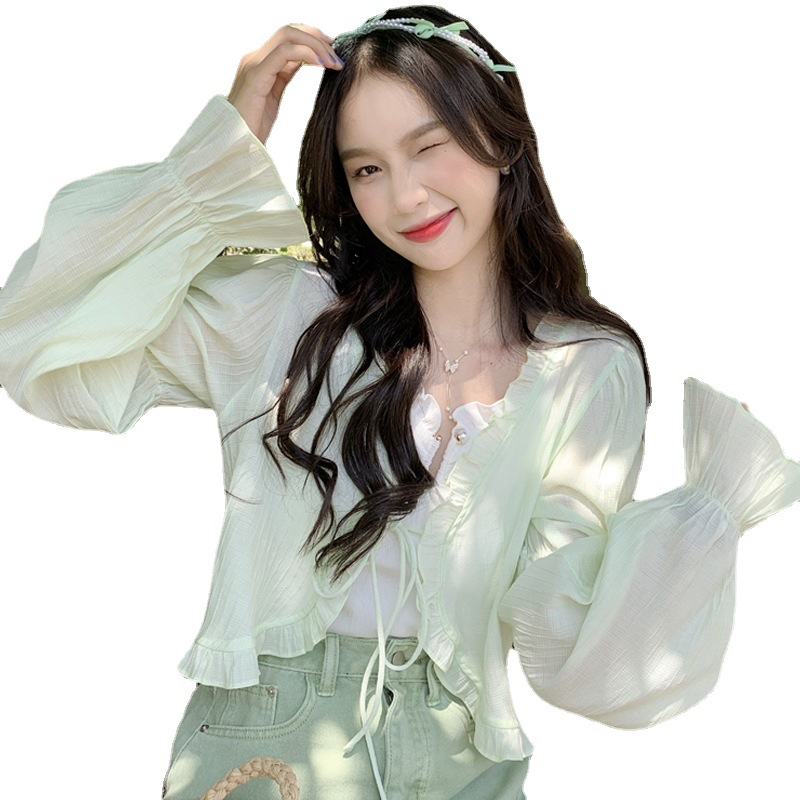 防晒衬衫外套女设计感小众开衫夏季薄款清新甜美韩系别致短款上衣