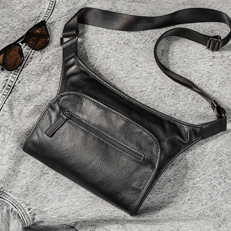 头层牛皮胸包简约时尚男士胸前小包情侣小腰包手机包潮