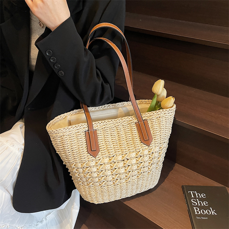 清新甜美草编包包女大容量托特包手工草编编织女士手提包