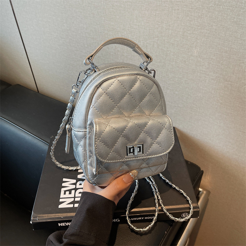 小香风迷你菱格链条双肩包高级感韩风可爱迷你手提小背包斜挎包女