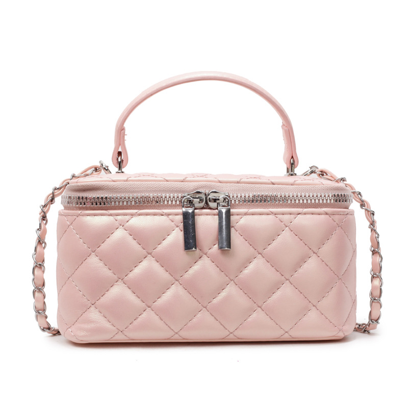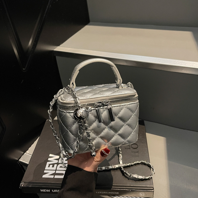 2025新款菱格链条盒子包女洋气潮搭时尚单肩斜挎包通勤手提盒子包