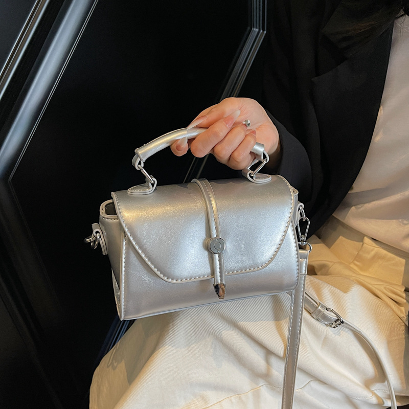 高品质腋下包夏季新款小众设计铃铛圆筒包银色百搭单肩手提包