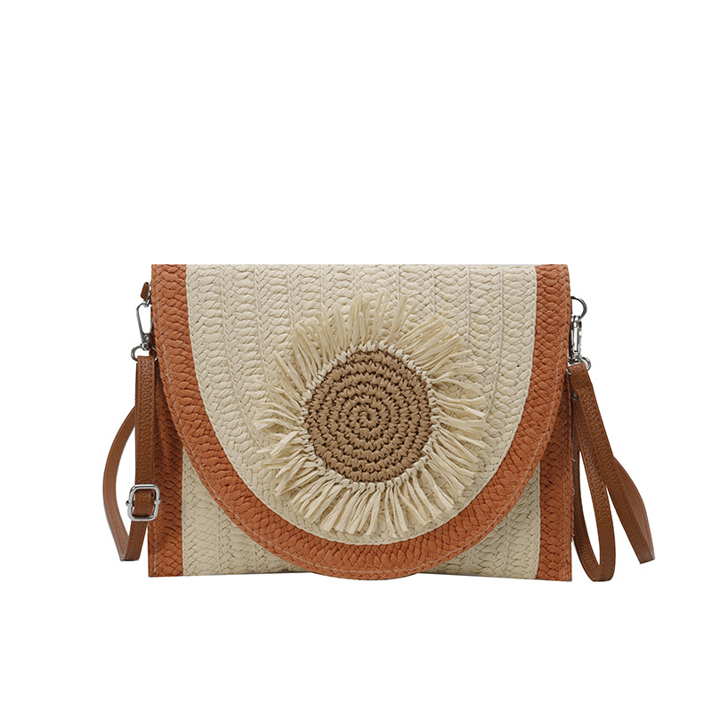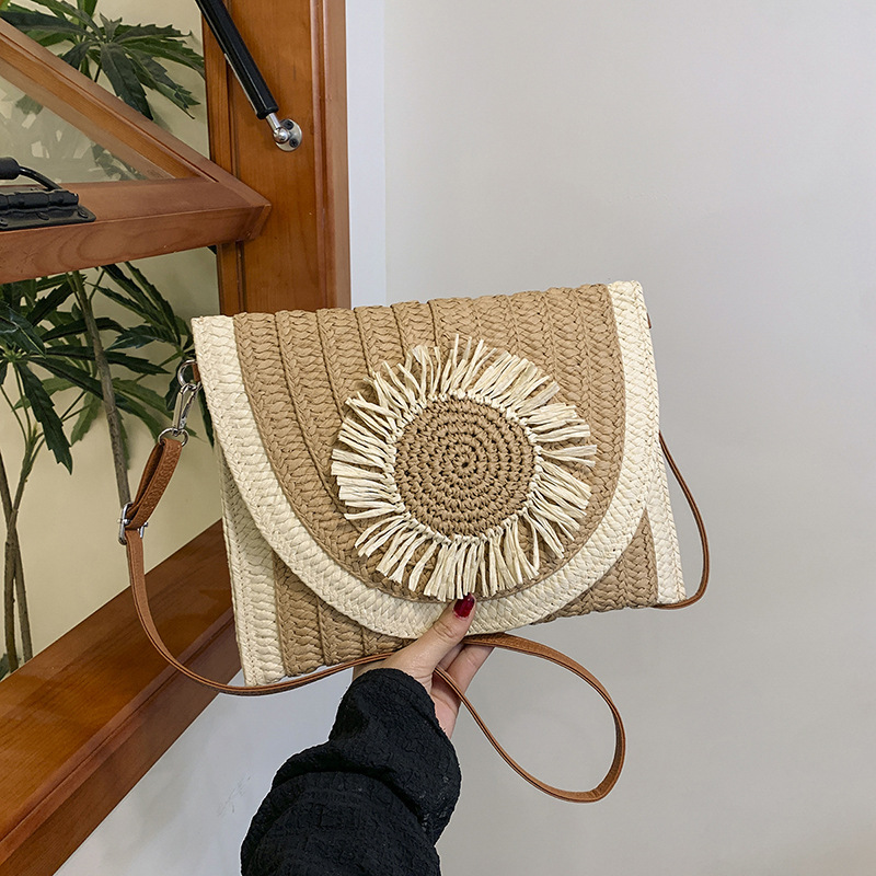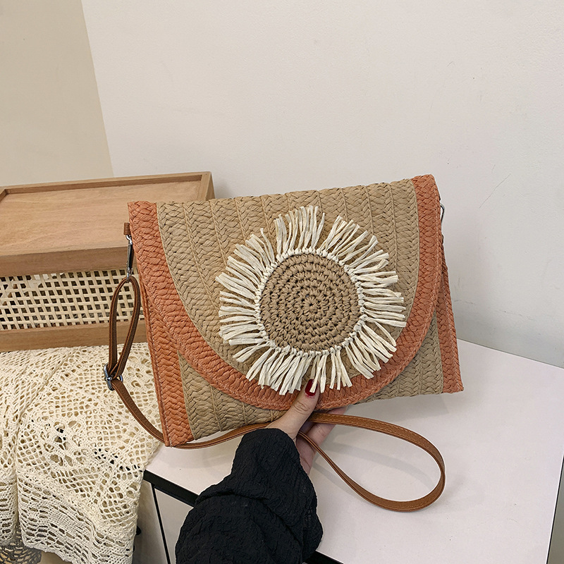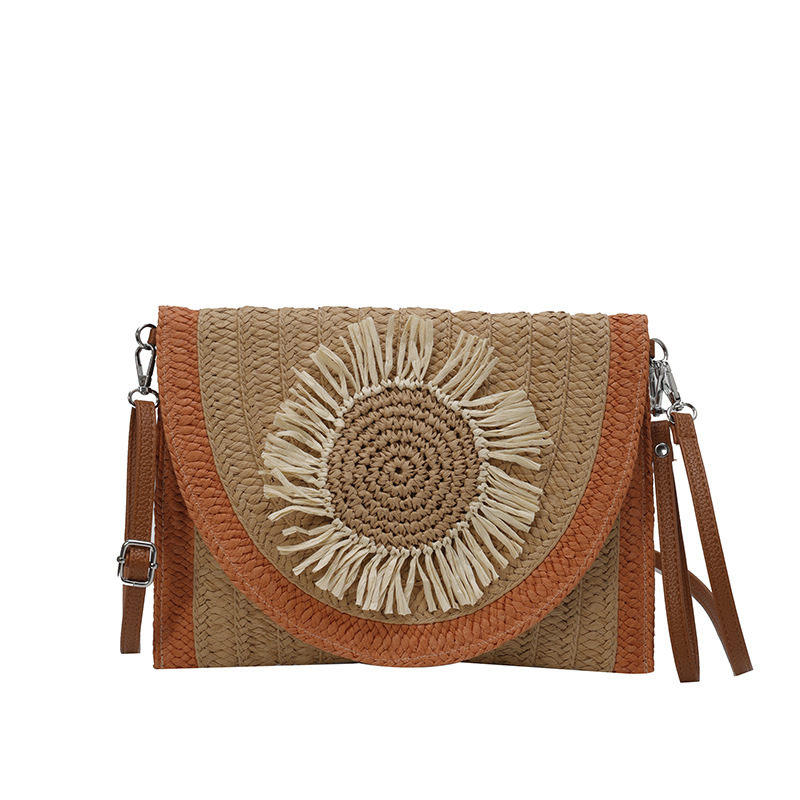跨境新款流苏手拿包 2025波西米亚草编信封包欧美时尚编织手拿包
