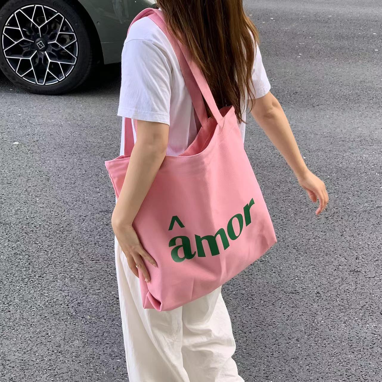 韩版休闲小众amor字母印花撞色帆布女包简约ins时尚小清新单肩包