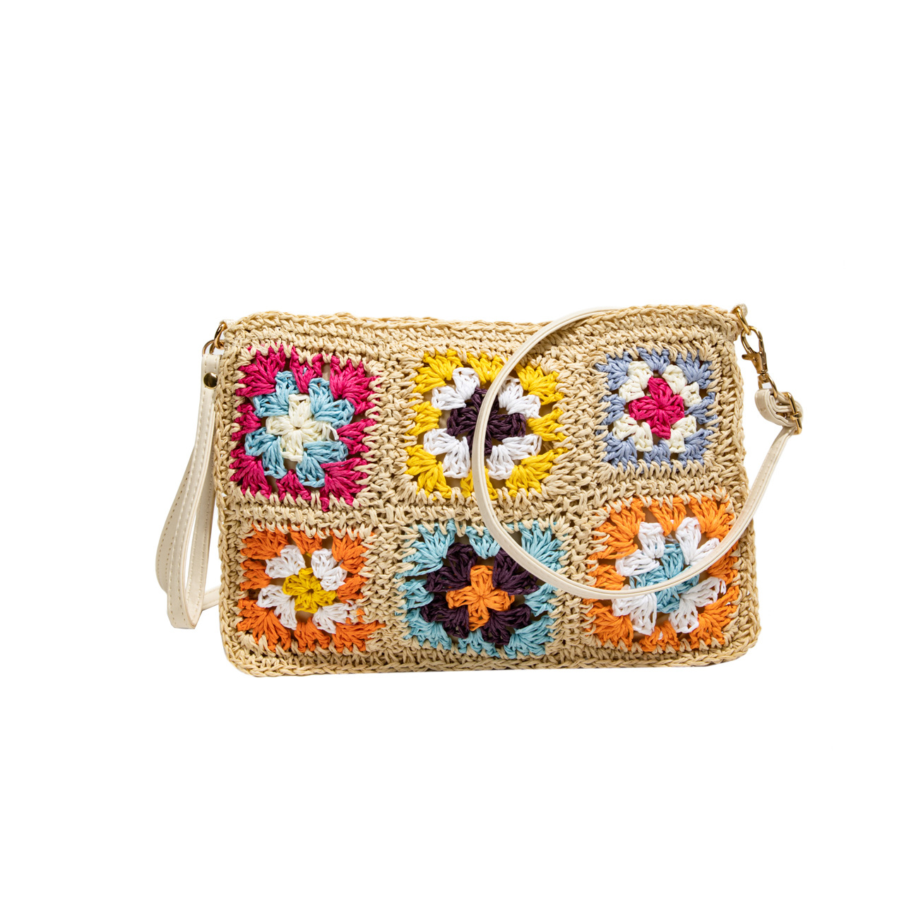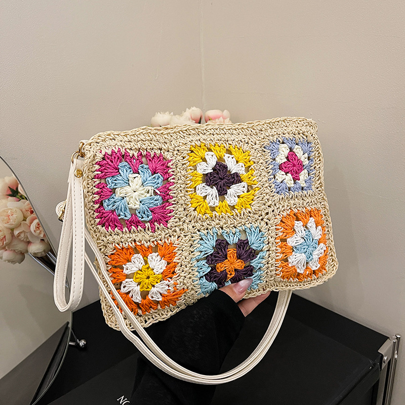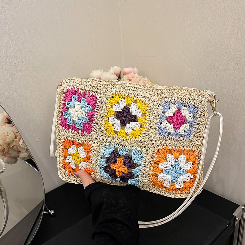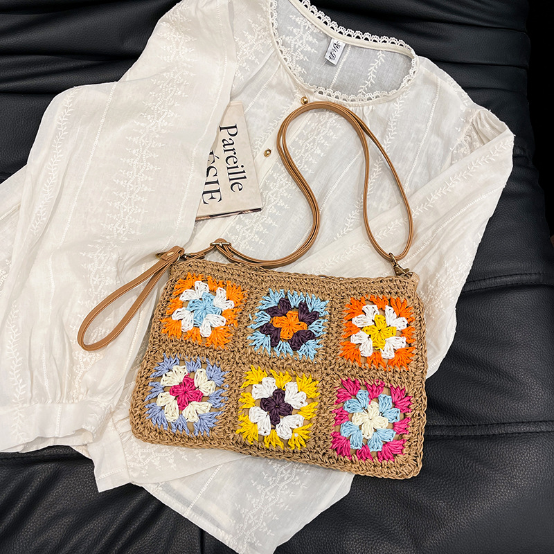 祖母格斜挎草编包新款撞色单肩草包编织包女沙滩包