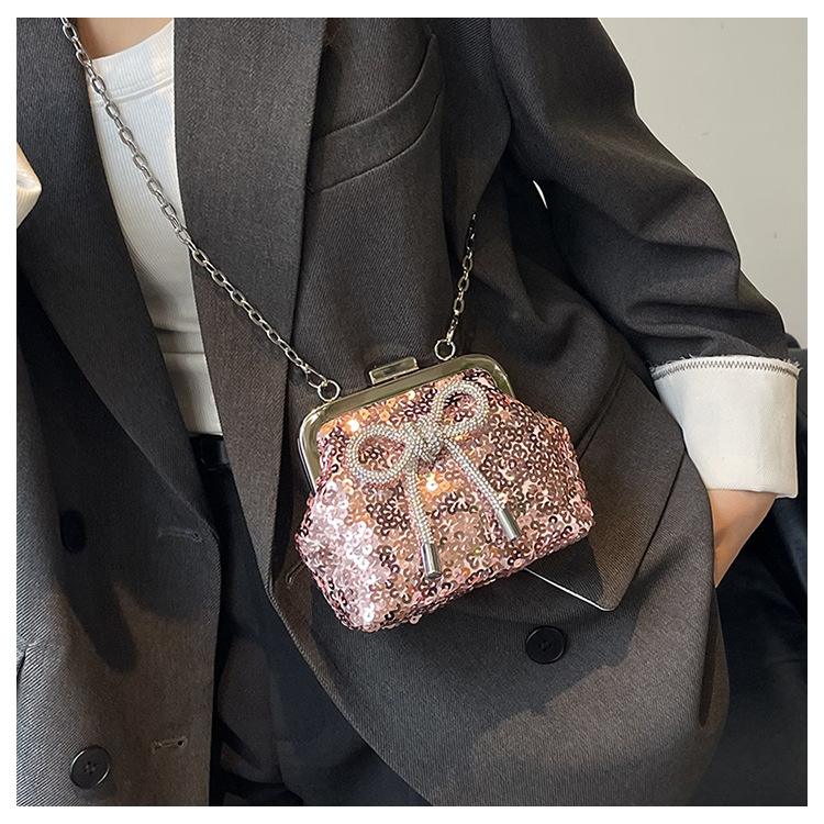 早春唯美个性韩版时尚女士单肩包女2025新款斜挎包洋气亮片晚宴包