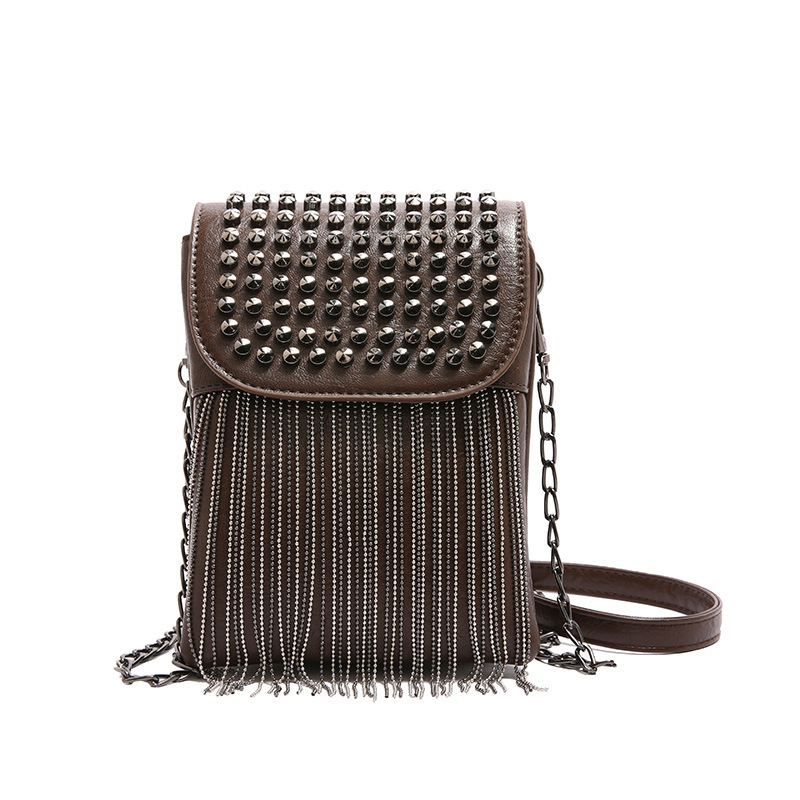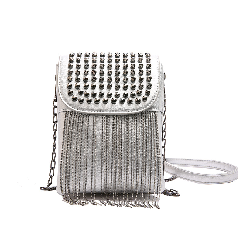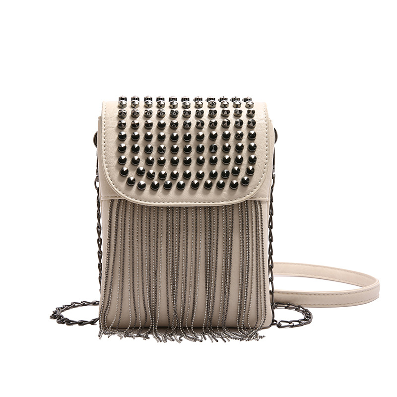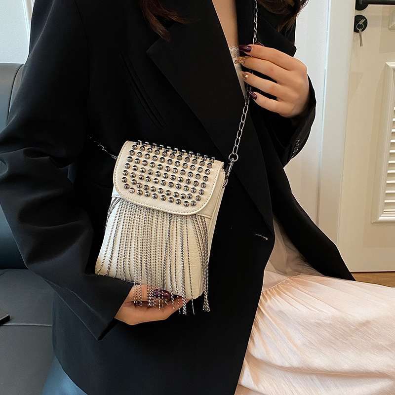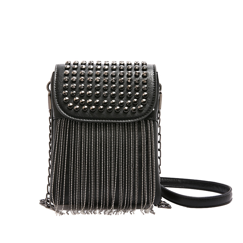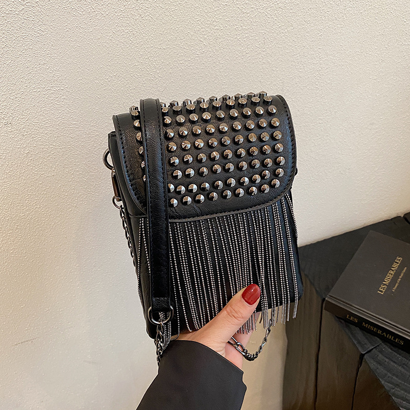 女包2025新款斜挎包铆钉小方包包女盖流苏手机包韩版女士pu单肩包