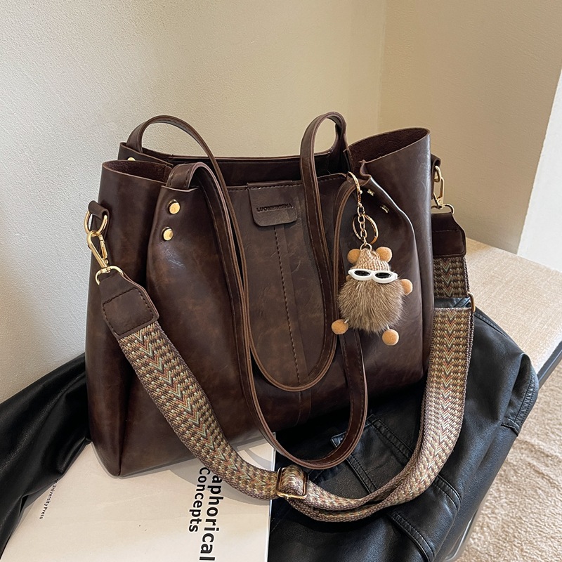 大容量托特包包女春夏时尚复古单肩包宽带斜挎包大学生上课通勤包