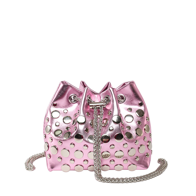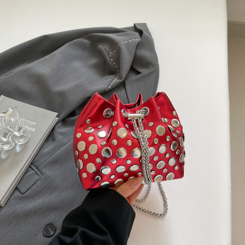 跨境爆款铆钉链条包女2025夏新款网红时尚斜挎包高级感洋气水桶包