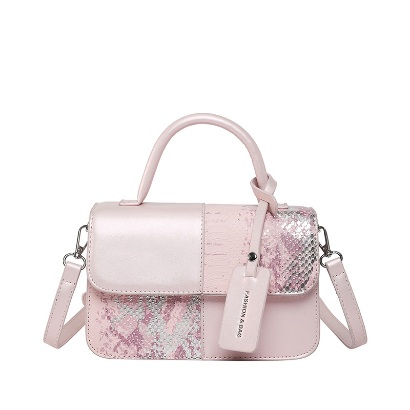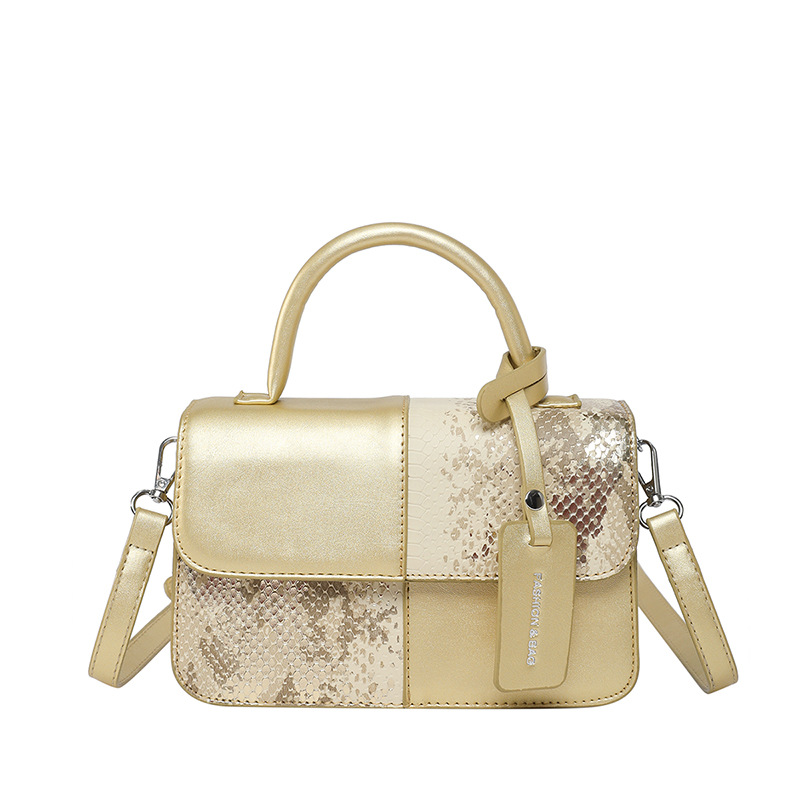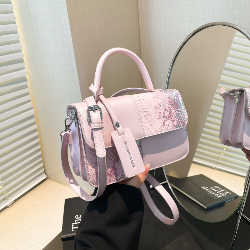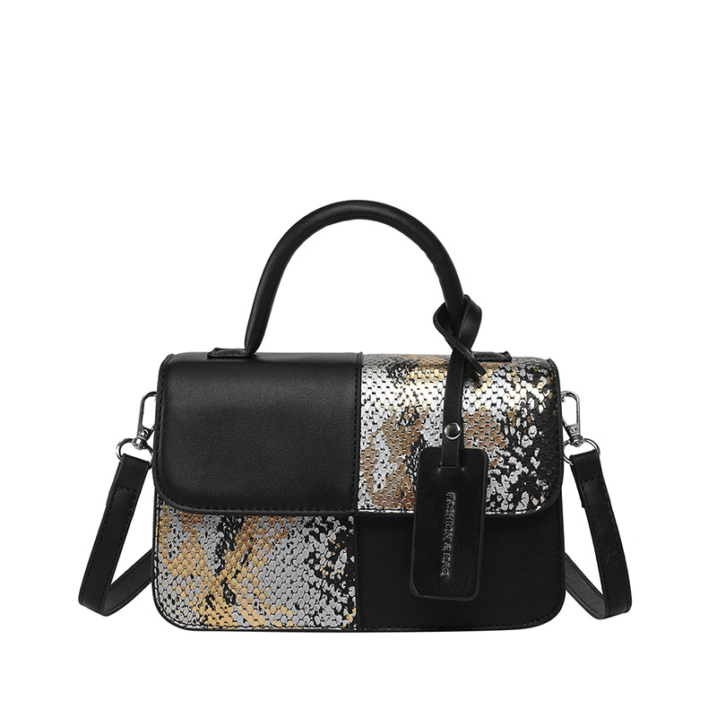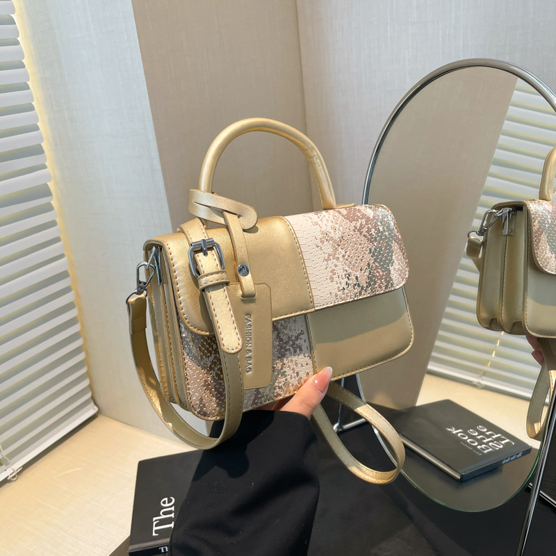 2025新款复古时尚蛇皮纹拼接手提小方包潮流撞色洋气单肩斜挎女包