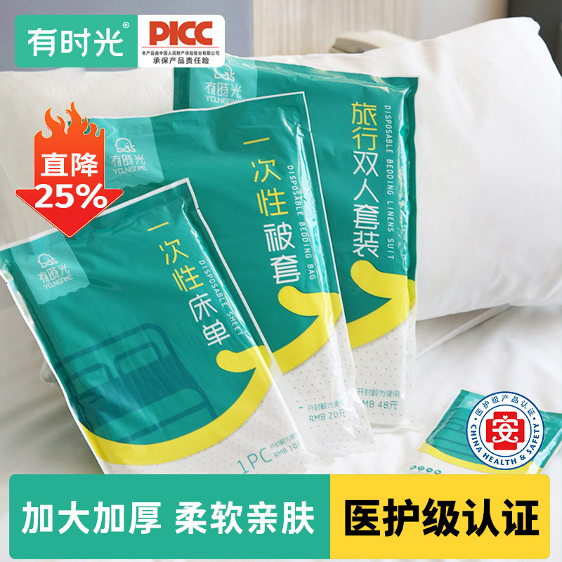 有时光旅行一次性无纺布枕套床单被套出差旅游酒店床上用品四件套