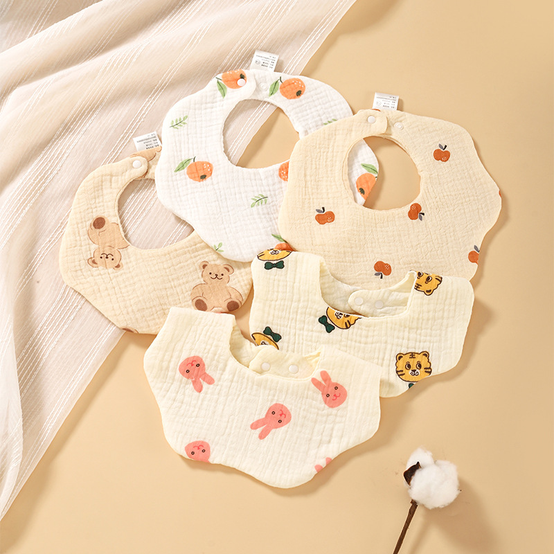 6层纯棉纱布花瓣围嘴儿童口水巾360度婴儿围兜新生儿防吐奶巾夏季