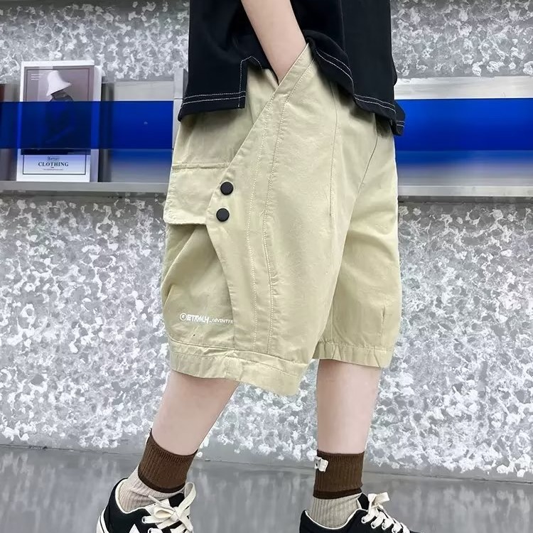 高街工装短裤男童夏季休闲运动裤ins港风潮流百搭宽松速干五分裤