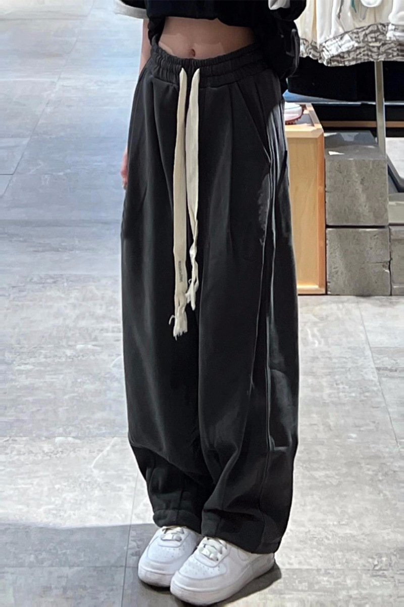 深灰日系阔腿长裤女春夏新款宽松休闲百搭绑带直筒裤运动卫裤潮