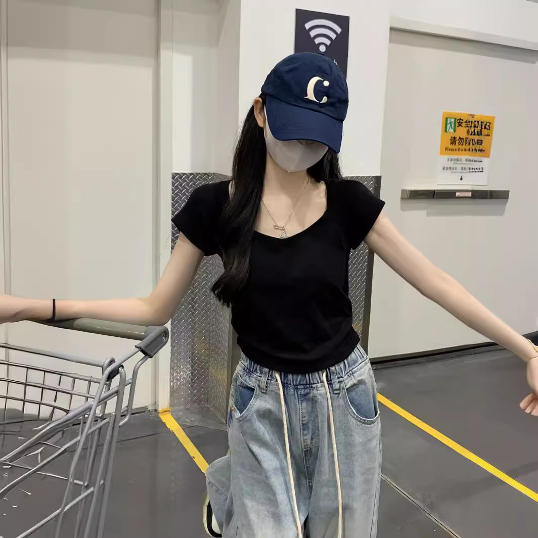 修身短袖t恤女装年新款显瘦气质夏季休闲百搭学生短款上衣服