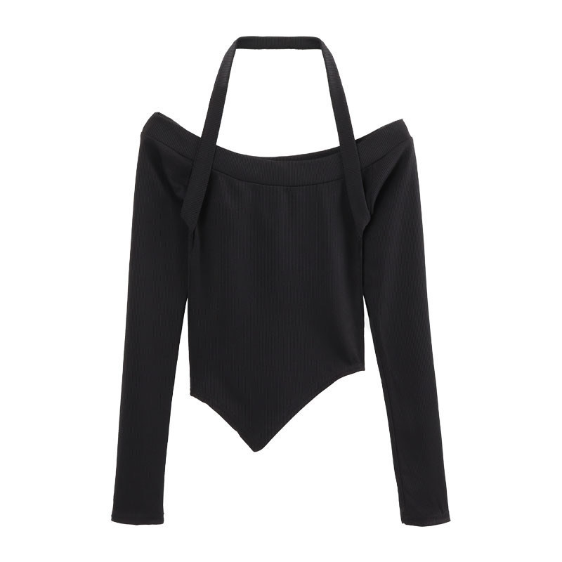 6805#一字肩挂脖T恤女2022早秋季新款辣妹内搭短款打底衫长袖上衣
