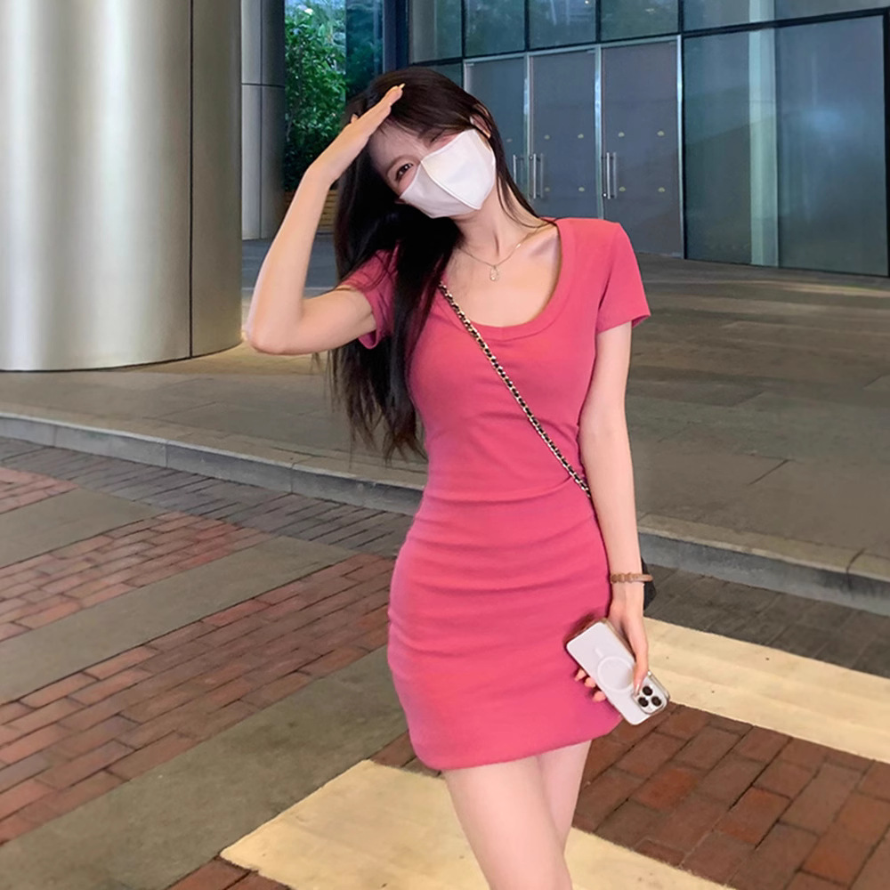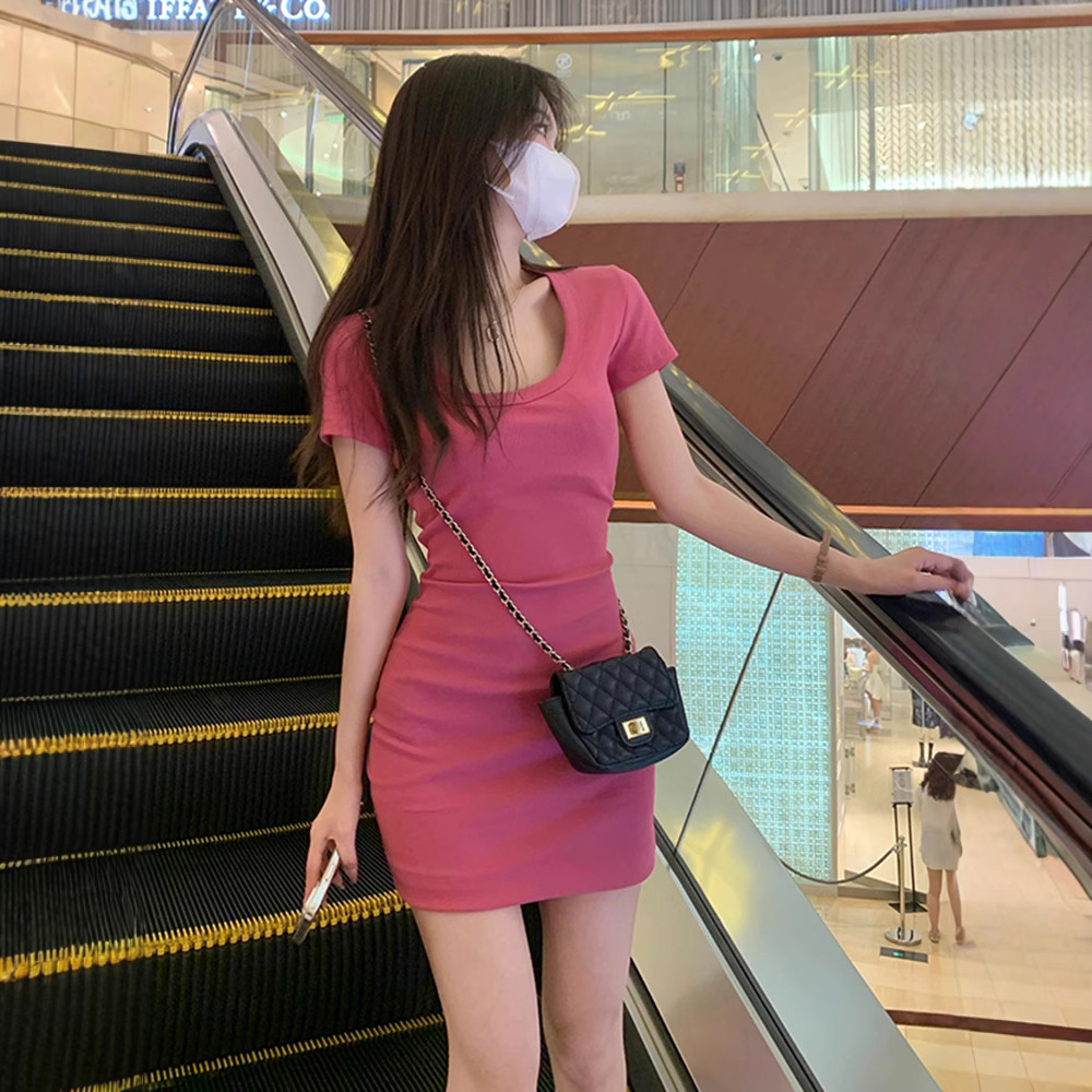 纯欲风性感短袖连衣裙女装夏季新款辣妹收腰修身气质包臀短裙子潮