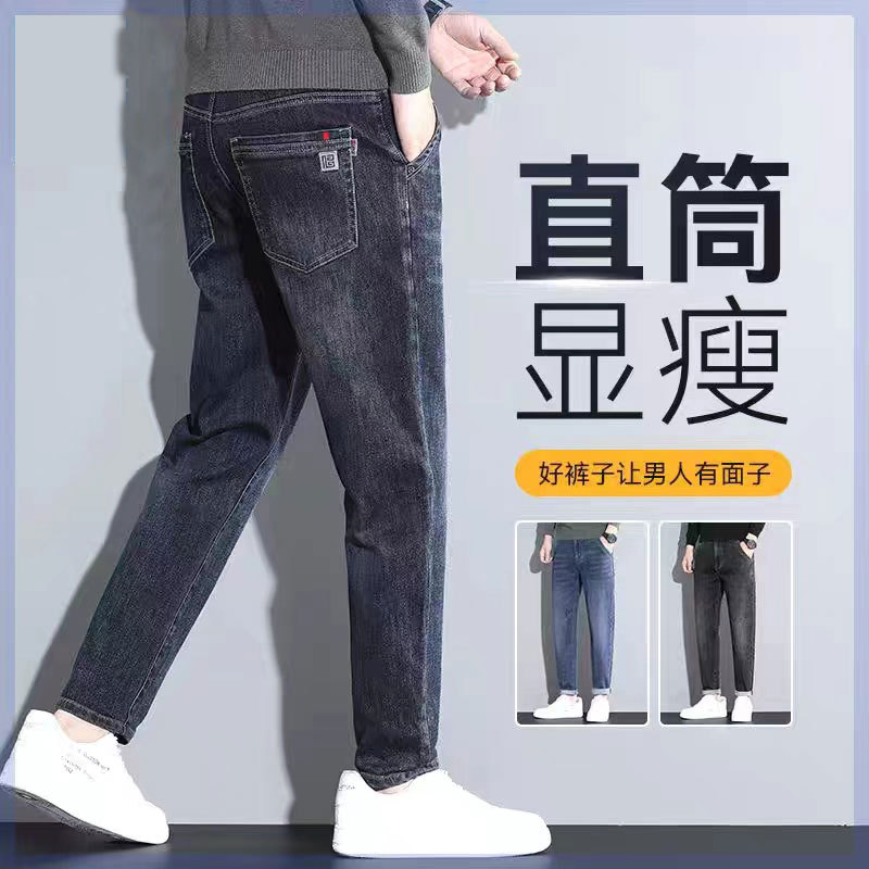 潮牌水洗弹力牛仔裤男生新款潮流直筒男士秋季宽松休闲长裤