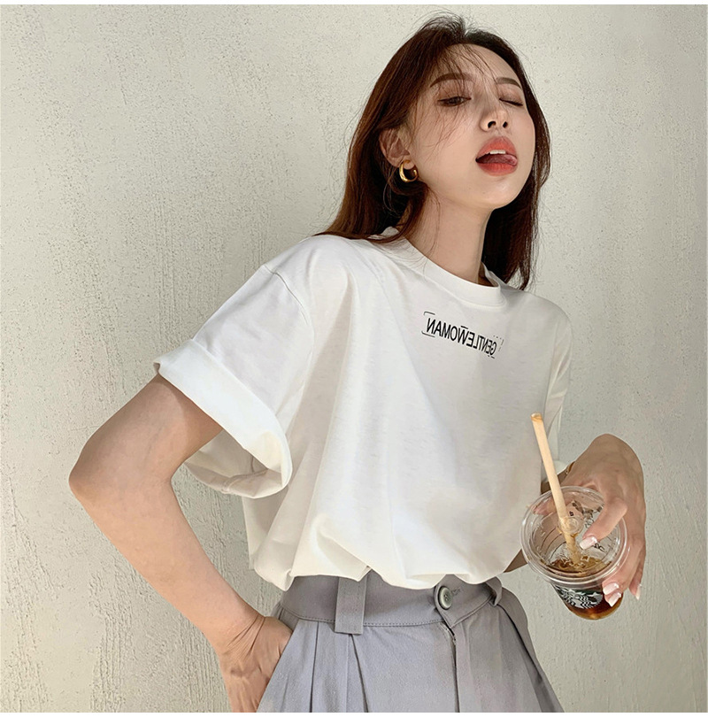 年新款夏季韩版ins超火短袖t恤女网红宽松百搭学生白色上衣潮