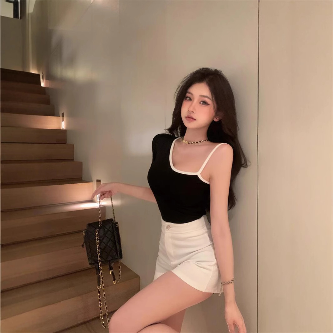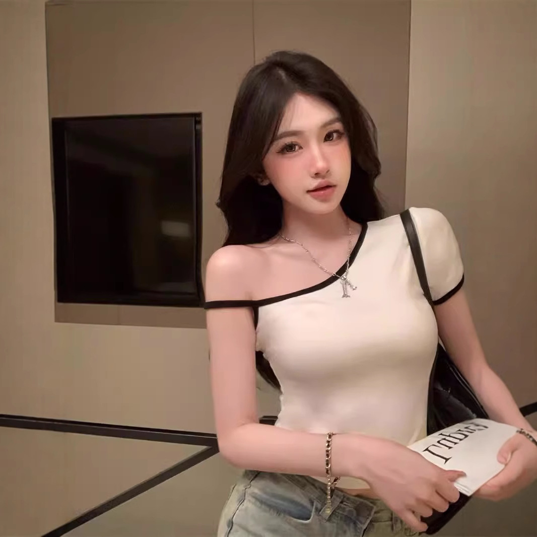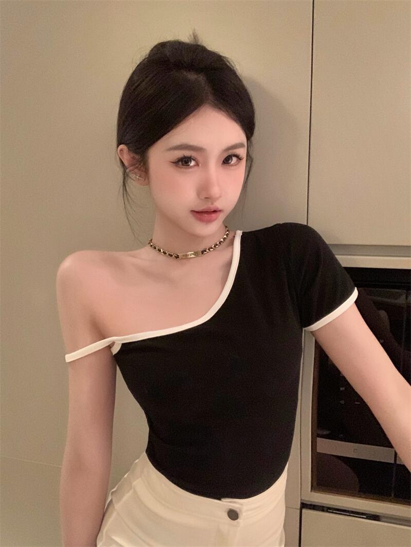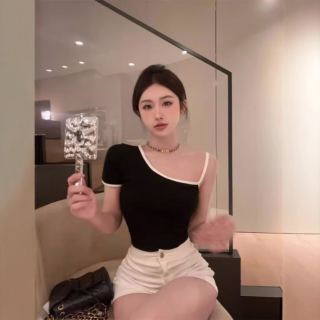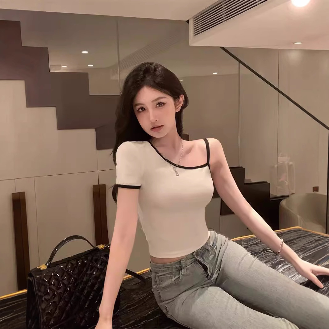 黑色辣妹吊带半袖T恤女2025夏季设计感独特别致修身露背短款上衣