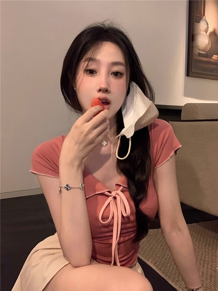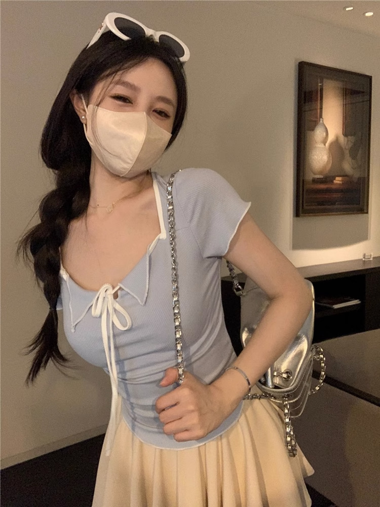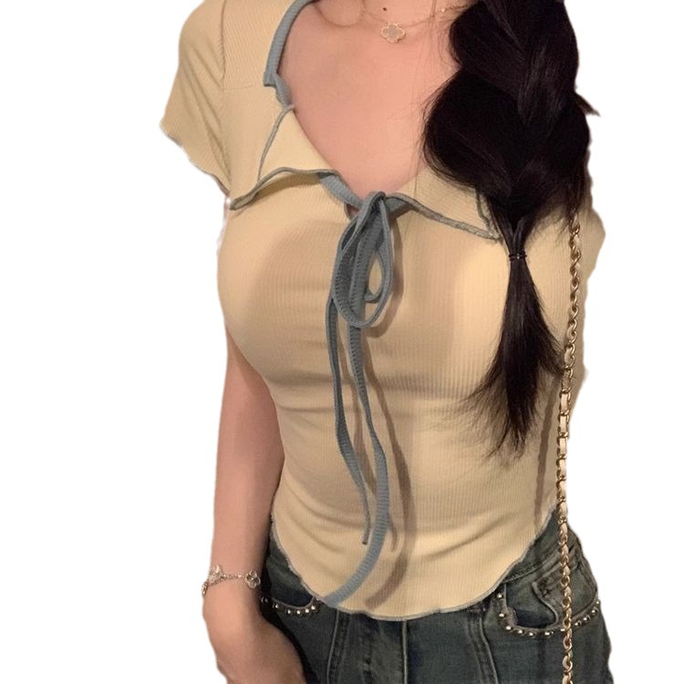 3690#kumikumi纯欲风辣妹短袖T恤女小众短款设计感紧身显瘦上衣潮