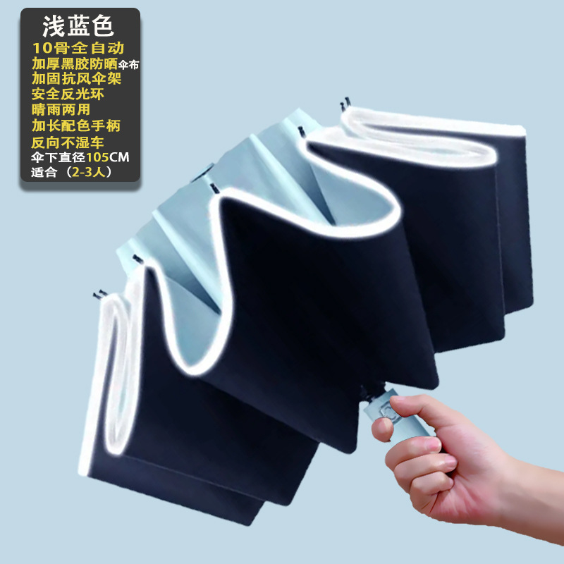 - 浅蓝色-晴雨两用(自动反向伞)10骨加固加大