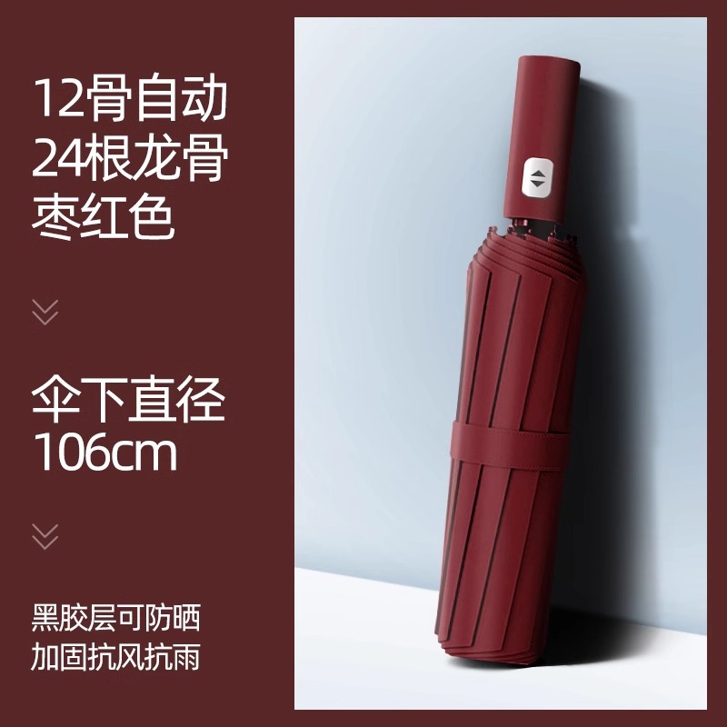 - 酒红色-晴雨两用(自动正向伞)24骨加固抗风暴