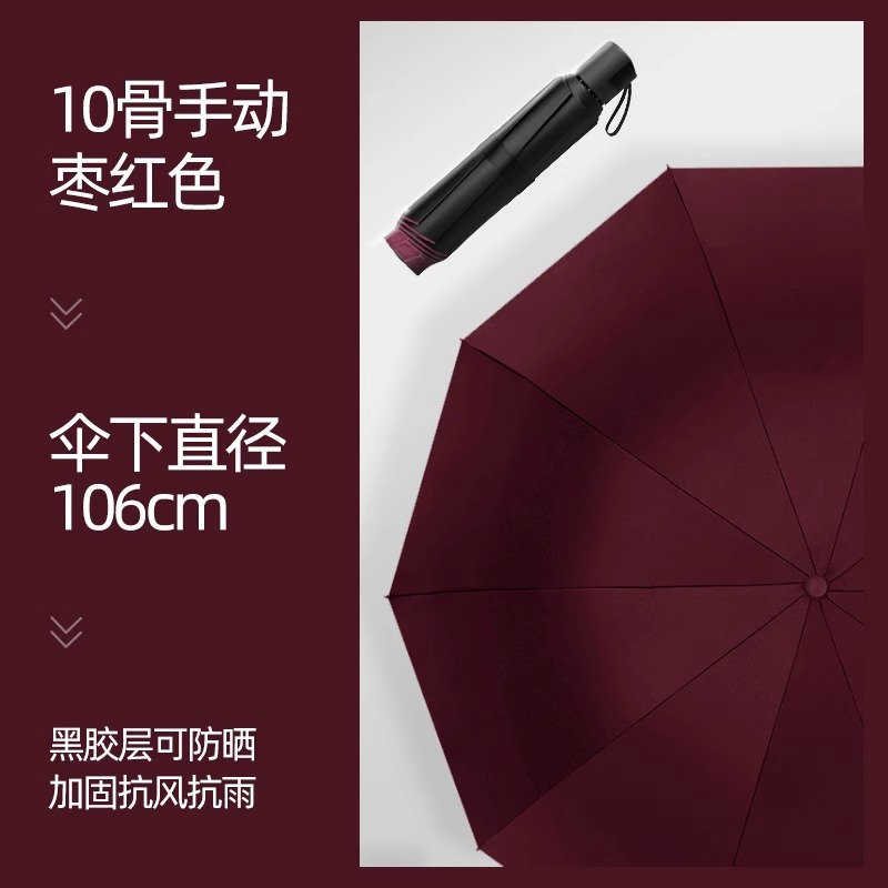 - 枣红色-晴雨两用(自动反向伞)10骨加固加大