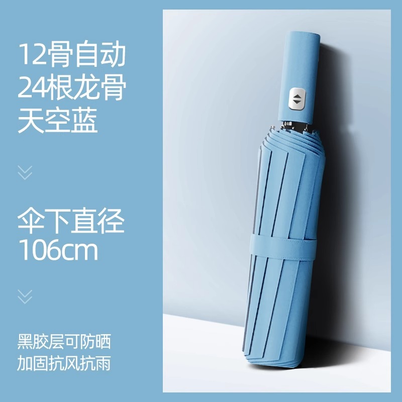 - 浅蓝色-晴雨两用(自动正向伞)24骨加固抗风暴