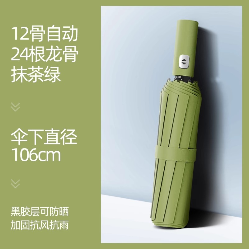 - 抹茶绿-晴雨两用(自动正向伞)24骨加固抗风暴