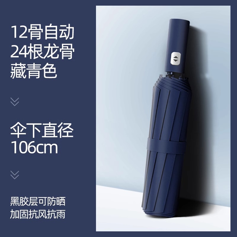 - 藏青色-晴雨两用(自动正向伞)24骨加固抗风暴