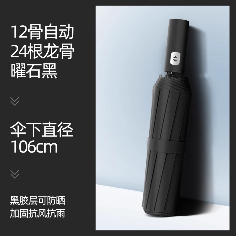 - 黑色-晴雨两用(自动正向伞)24骨加固抗风暴