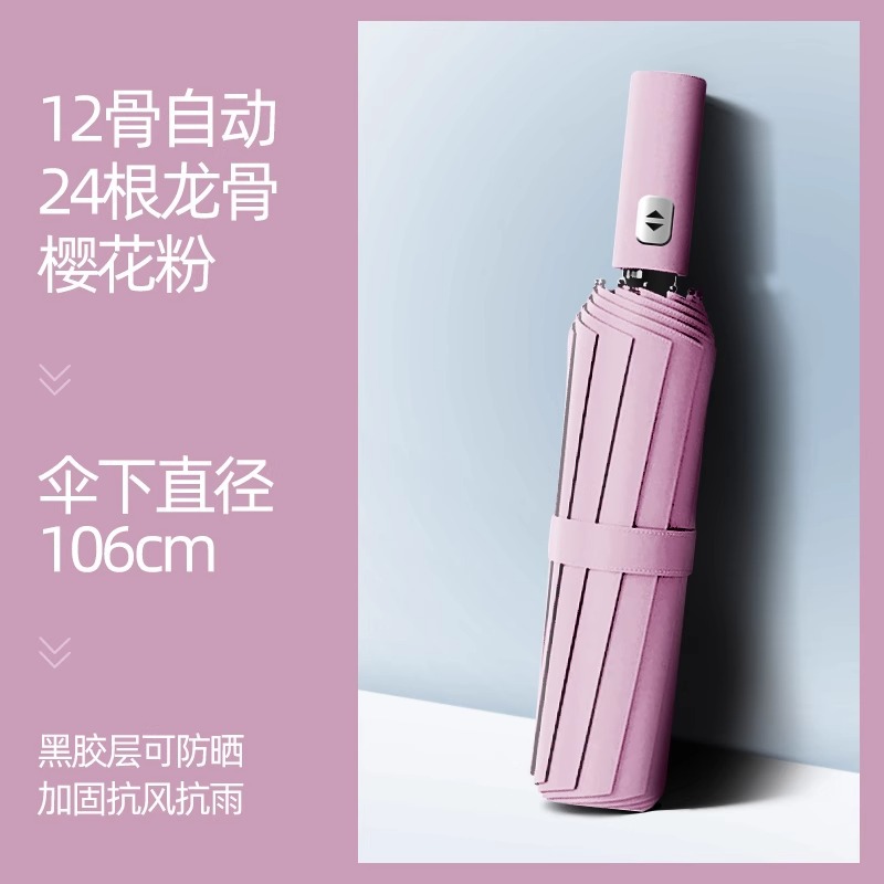 - 粉红色-晴雨两用(自动正向伞)24骨加固抗风暴