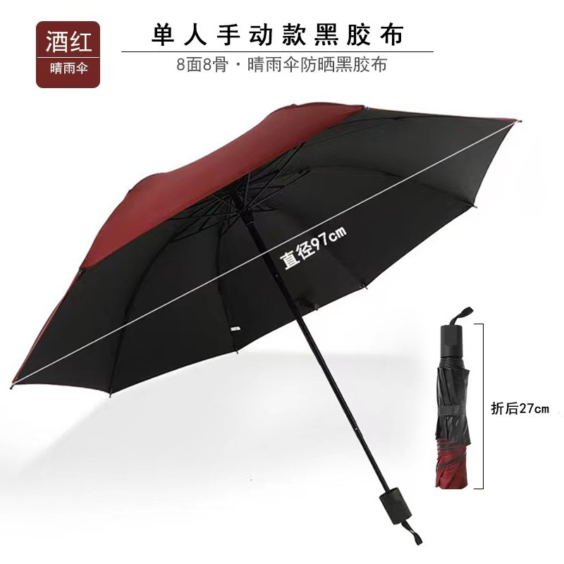 - 8骨酒红-黑胶-伞下98cm
