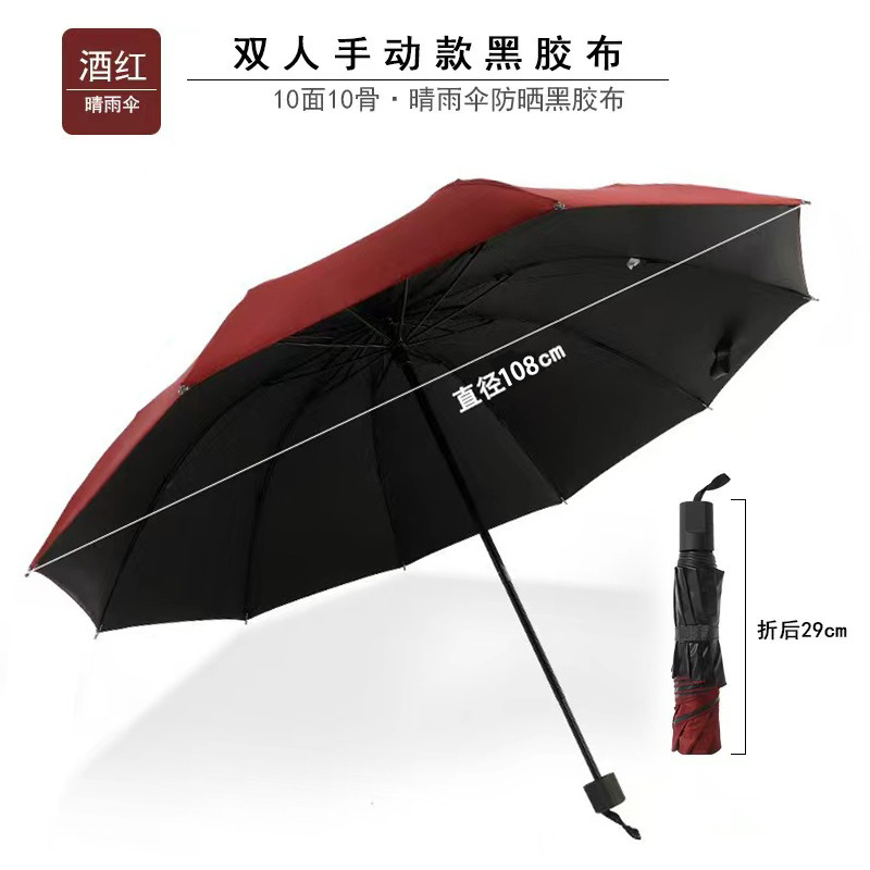 - 10骨酒红-黑胶-伞下108cm